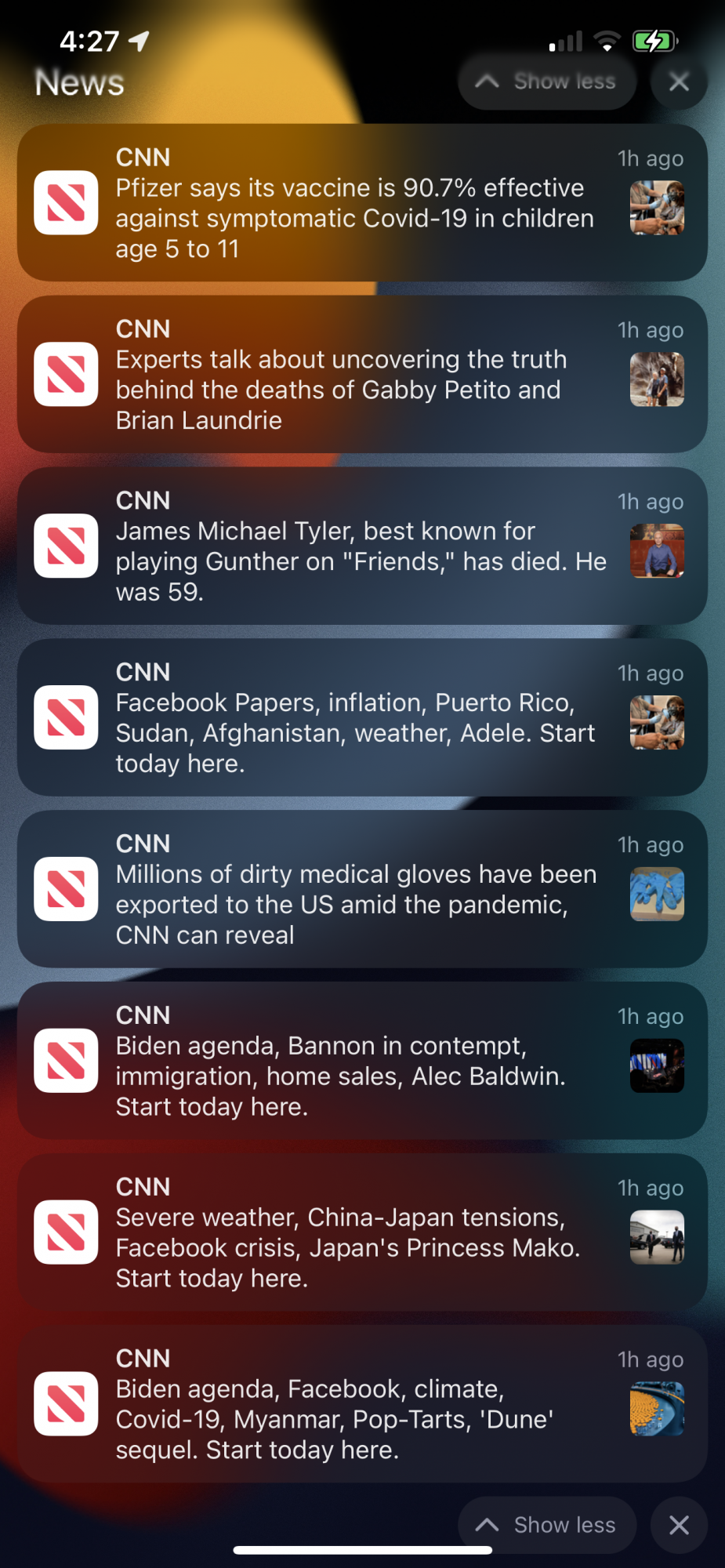 Now they say 11 minutes. It seems like whatever the most recent notification is, they copy that for all of them.There's a bug with notifications, but it seems like it's only happening with the News app, where it would show all the notifications for news stories but say they were sent an hour ago, no matter how old they were.