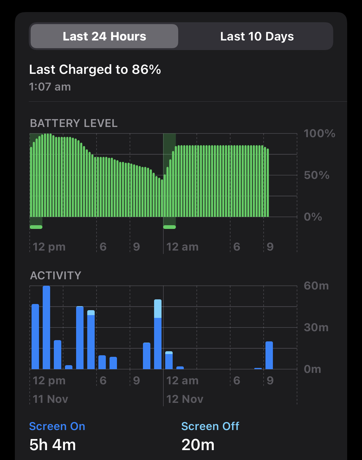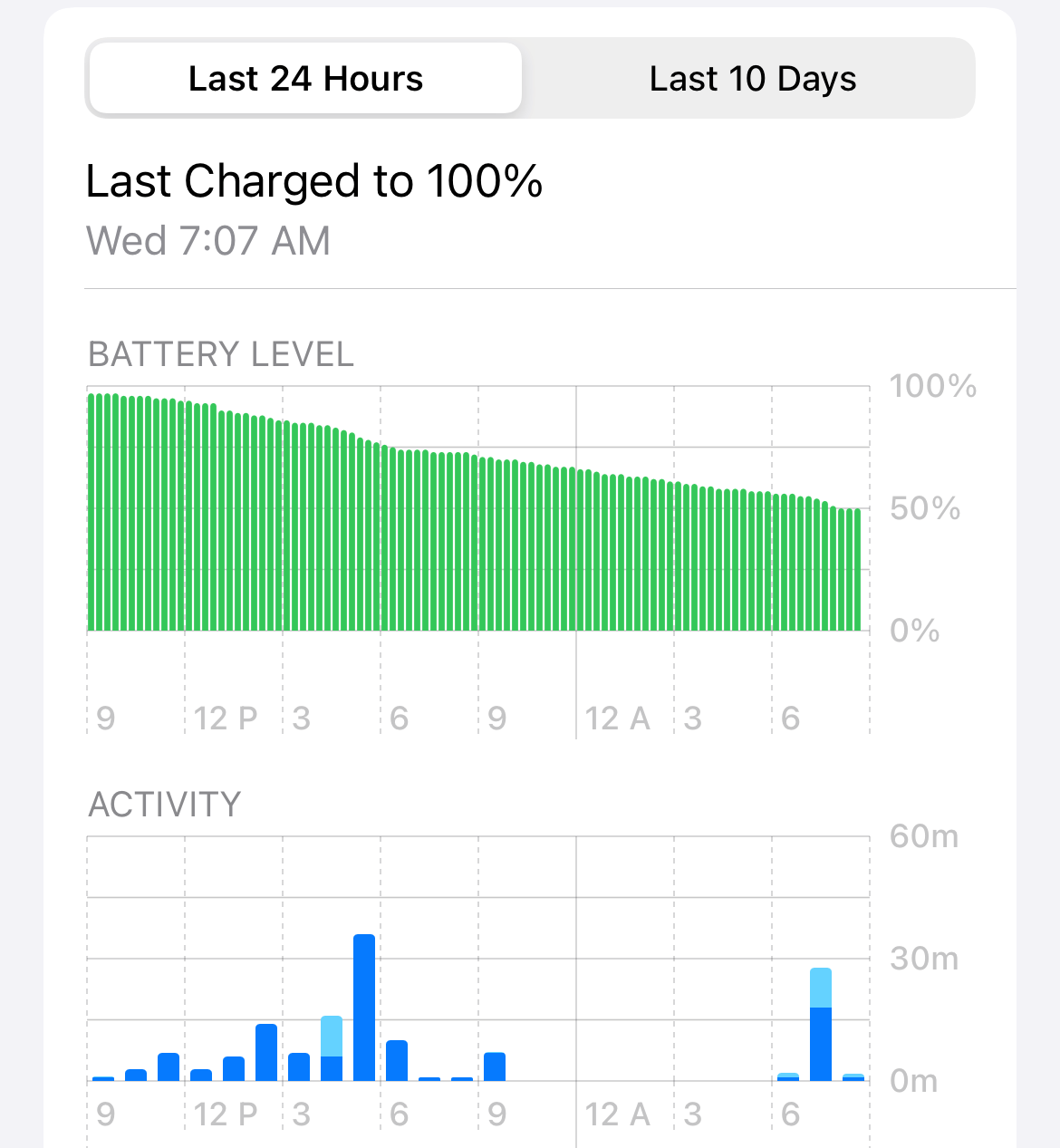 I wish I could get that nice flat graph. Two nights now I've left it off charge at 71% (daily usage patterns seem to be consistent) and woke up with ~50%. You can see that there's nothing showing on the activity graph for the hours I'm asleep so I'm a little confused as to what could be causing this.Yeah feels great on my 12. Really polished for a B2, for me anyway, and my battery is back to nearly flat lining during the night. B1 something wasn’t quite right, I was seeing a slight bump in battery drain, but so far, so good on B2. 👍🏼