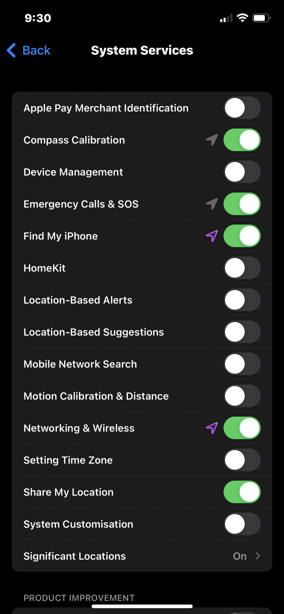 Do not disturb is always on during the night. And then these settings are off which constantly use location services which could drain through the night.