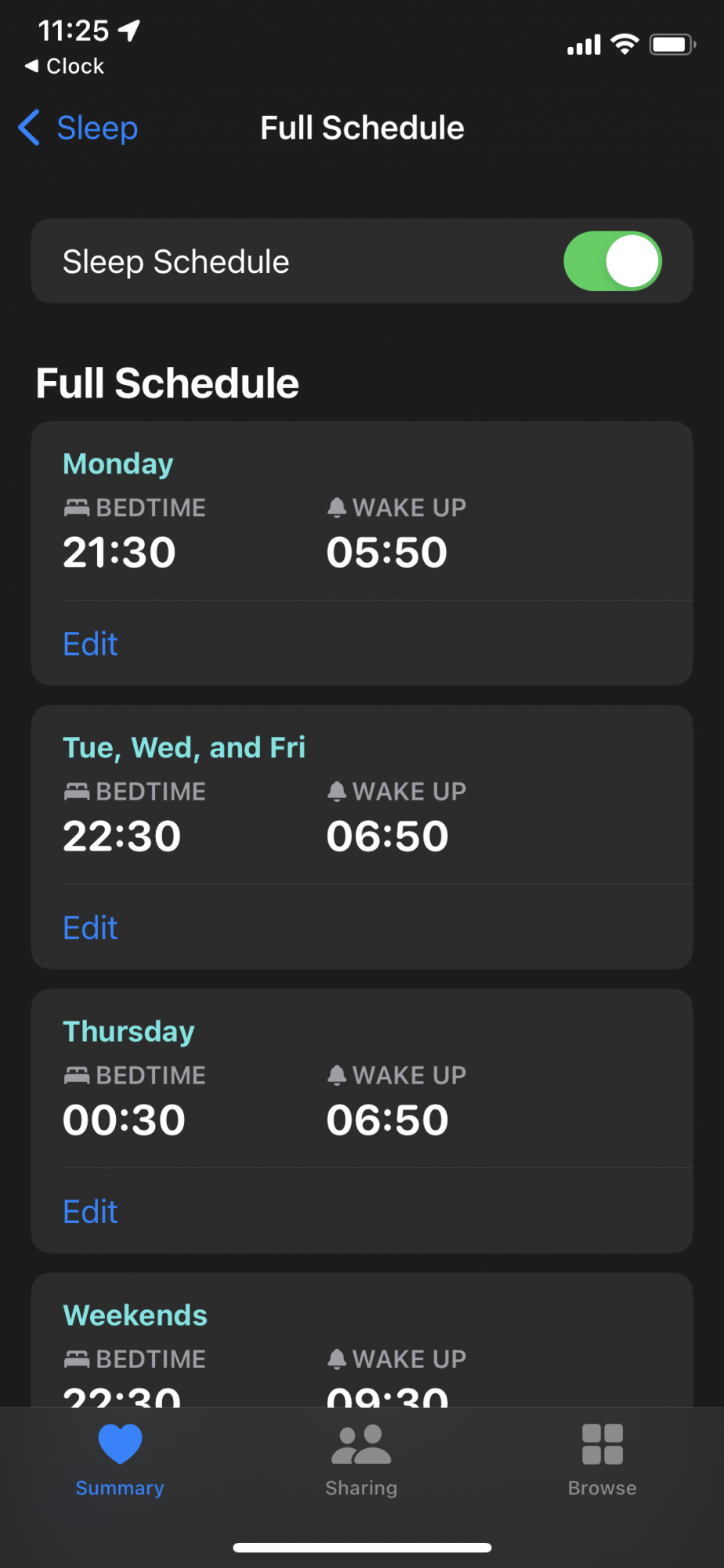 (For those looking, the screenshot above is from the health app, where you set up sleep mode)