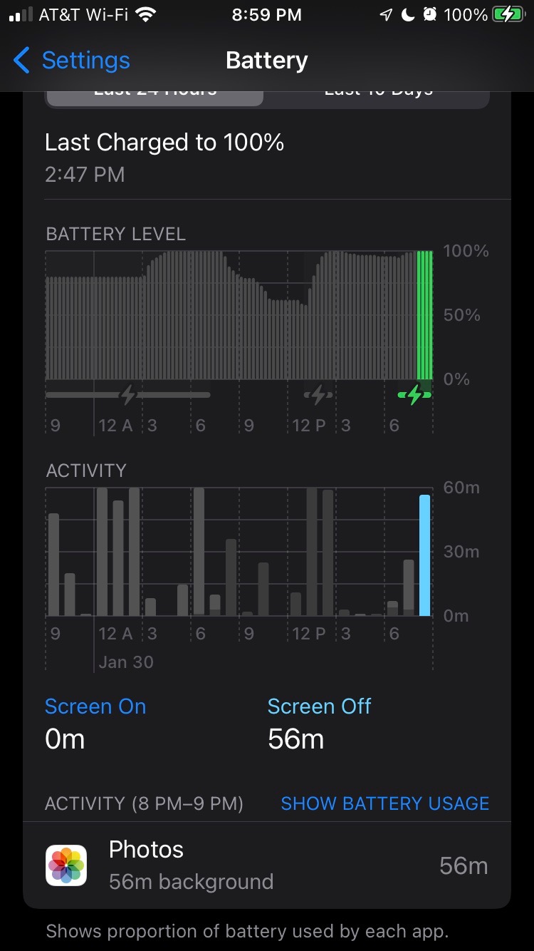 Here is a new one - Settings: 48 minutes screen on time, 36 minutes background. Settings with background? Never saw that before.