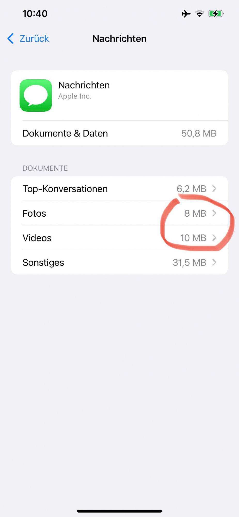 does not work either and the weird thing is, when I check messages in iPhone storage, it does not show anything (as I always clean the list) yet it claims Photos uses 8 MB and Videos 10 MB (again, with nothing actually inside).