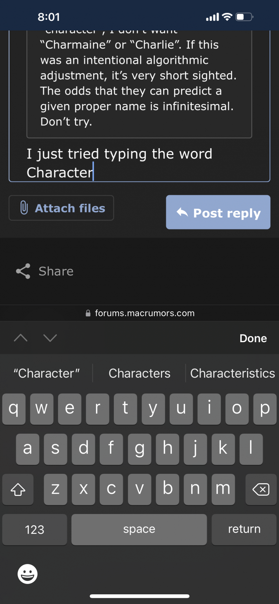 I’m glad it’s not just me. This drives me crazy. If I type “character”, I don’t want “Charmaine” or “Charlie”. If this was an intentional algorithmic adjustment, it’s very short sighted. The odds that they can predict a given proper name is infinitesimal. Don’t try.