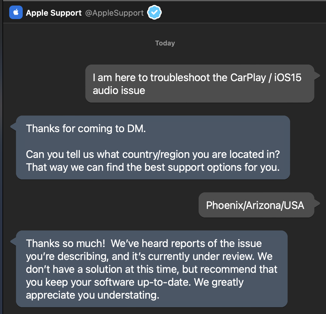 Went for a drive today for the first time since getting my iPhone 13 Pro. Got the Music crashing CarPlay issue and also noticed that opening an app on the iPhone also crashes CarPlay. Didn’t get this on my iPhone 12 Pro with iOS 15.