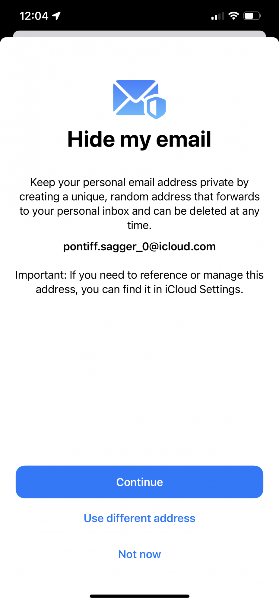 That is exactly what is supposed to happen. It is creating a random address that you can use (which automatically forwards to your personal email address).I’m able to create new but have Random iCloud address come up when selecting create new. Is this for iCloud.com email only?