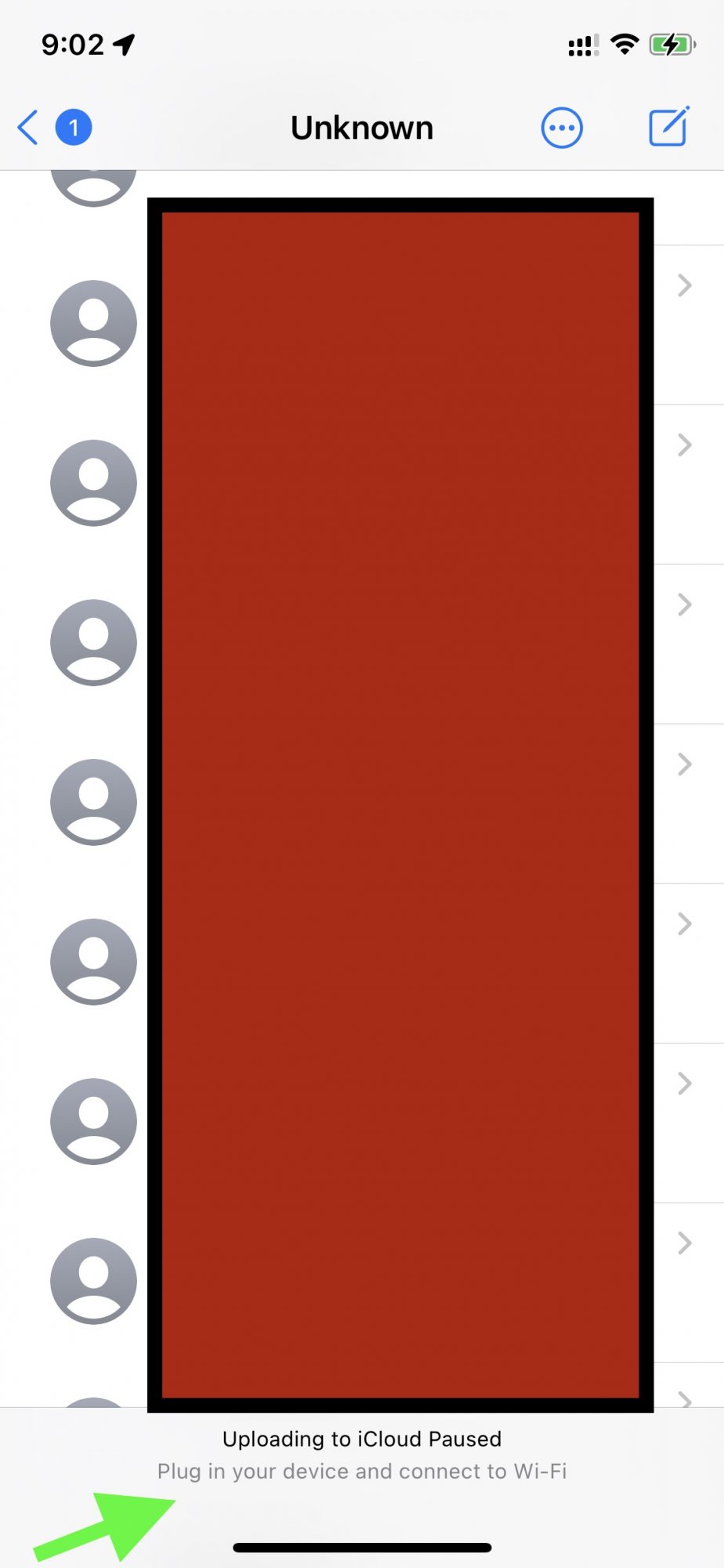 Still Messages are not uploading to iCloud (not showing on other devices too), and this message shown in green arrow not going away either.