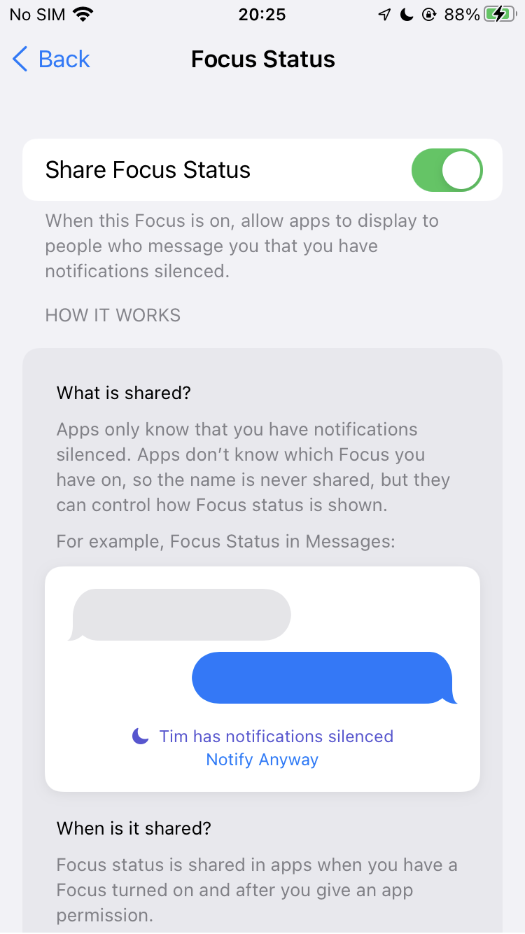 Focus settings page got a hefty UX upgrade (iPhone 7 screens, sorry):