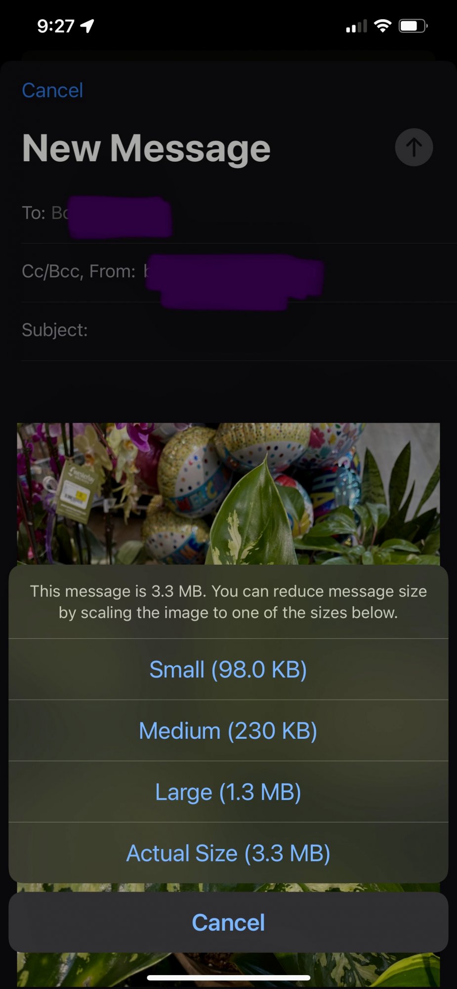 Noticed that when I select a photo to share via the Action Menu, the size options have changed. You used t have Small, Medium, Large, and Actual Size. Large is no longer an option.