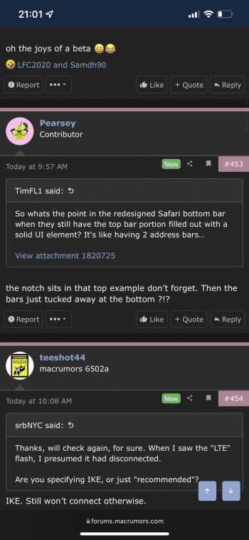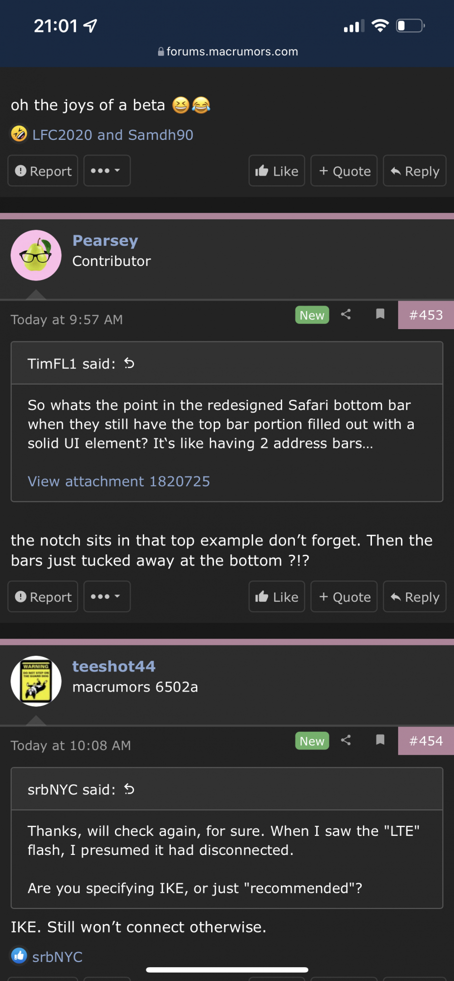They’ve definitely taken a step backwards when it comes to screen real estate, I actually like the address bar down the bottom, but they’ve ruined it in beta 6, put on a few kg. 🤦♂️😂 I’ve gone back to the top address bar until apple get their act together.Right now you get the most content visible if you use the old style address bar at the top. There is about one to two extra lines of text visible in this mode compared to the address bar on the bottom. Definitely more tweaking is required. Whatever they do I just want them to sort out the menus and to maximize visible content.