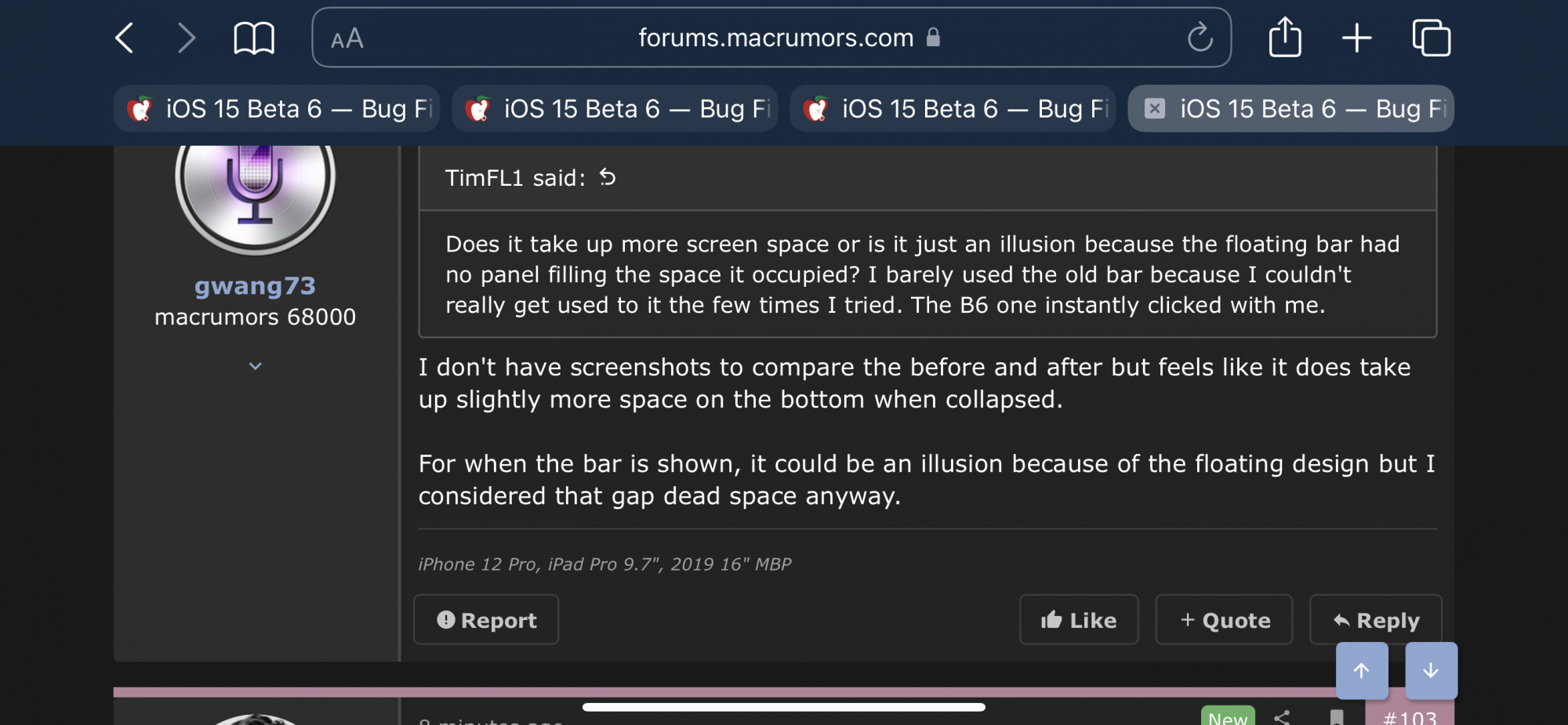 I prefer the floating bottom bar from Beta 5, and not liking the changes to Beta 6. as it gave so much of the web page to the whole screen.