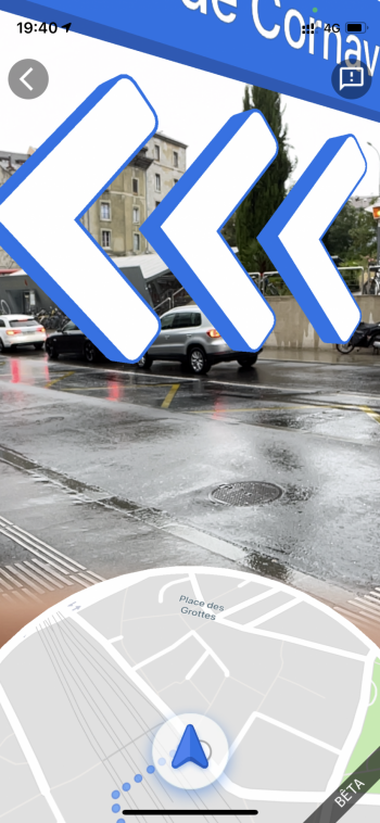 First, initiate a walking route, then simply raise your iPhone and scan the buildings around you when prompted. The step-by-step directions will appear in the AR mode automatically, which should make it easier to get where you need to go, especially in situations where the directions are tricky.