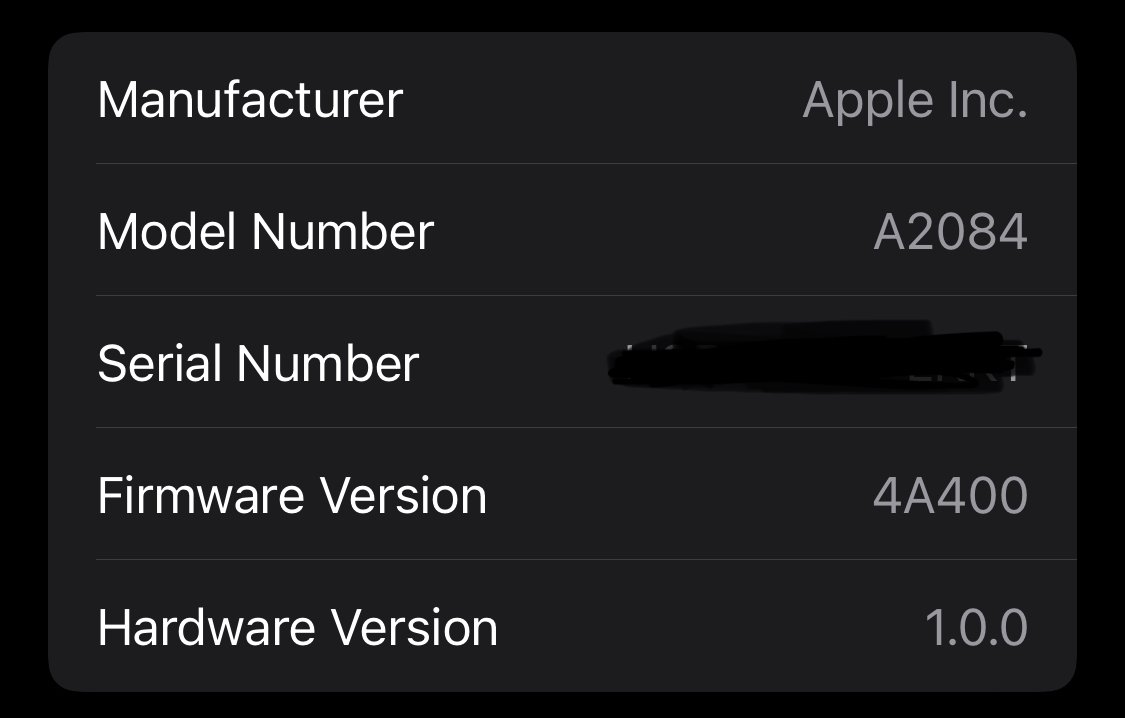 After a short while, any available software updates should be automatically downloaded and installed. If you're having trouble updating your AirPods, make sure the charging case is fully charged. You can also try resetting the AirPods. You need AirPods firmware 4A400 or later, and can check your firmware version by following these steps: