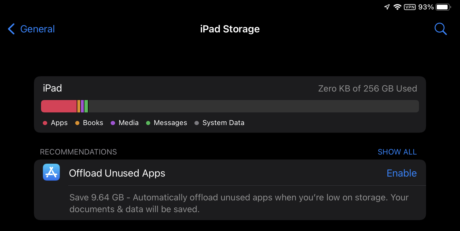 Same on my iPhone 12 Pro. Zero out of 256 GB.