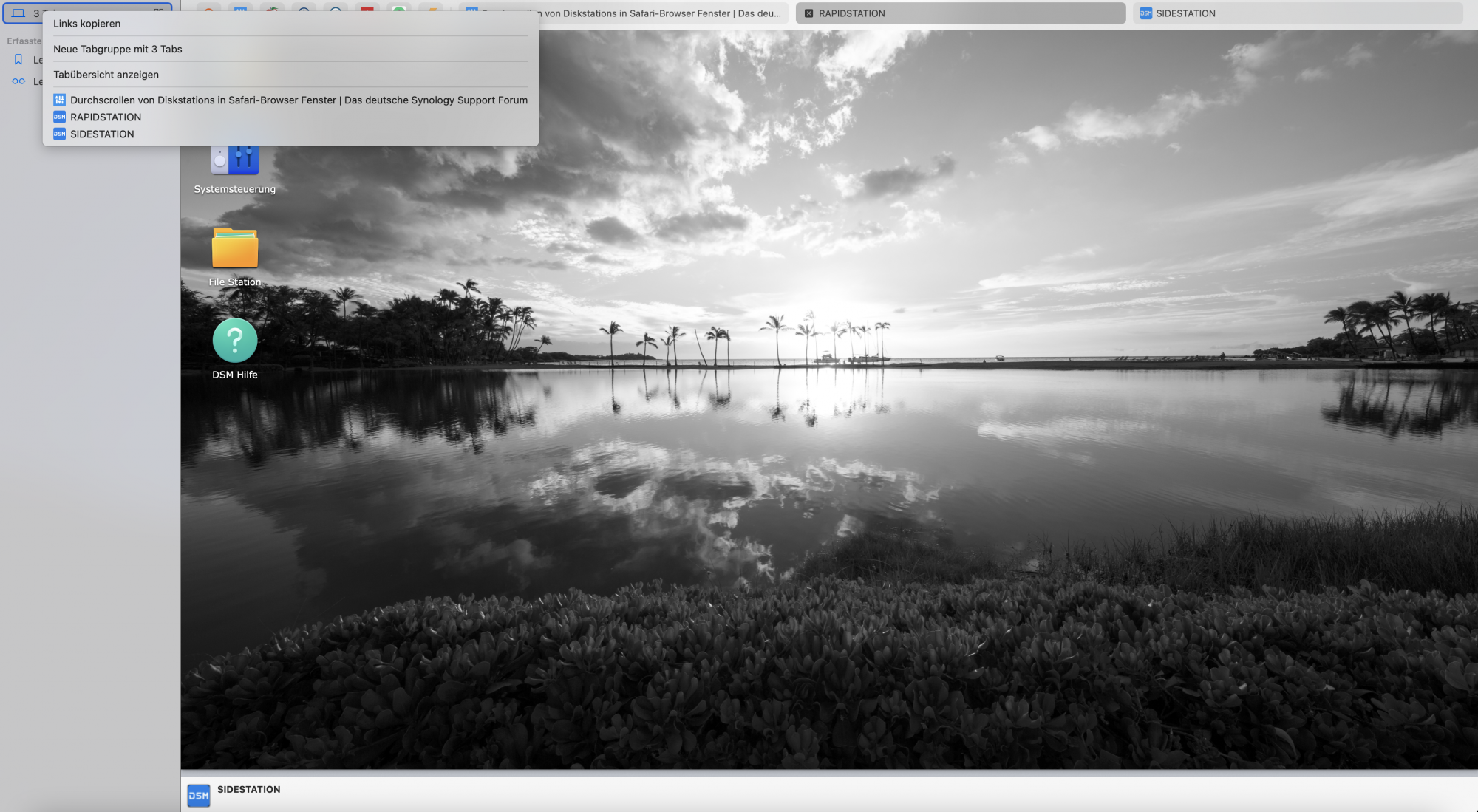 Because all the three windows I accidentally grouped where Synology NAS DSM screens, I first suspected Synology of having created this evil feature. But no, it was APPLE!!! I'm speechless. Apple creates such a bad and completely unusable functionality?!? I know these kind of badly designed and implemented features from Microsoft and this was one big reason for me to switch to Apple.