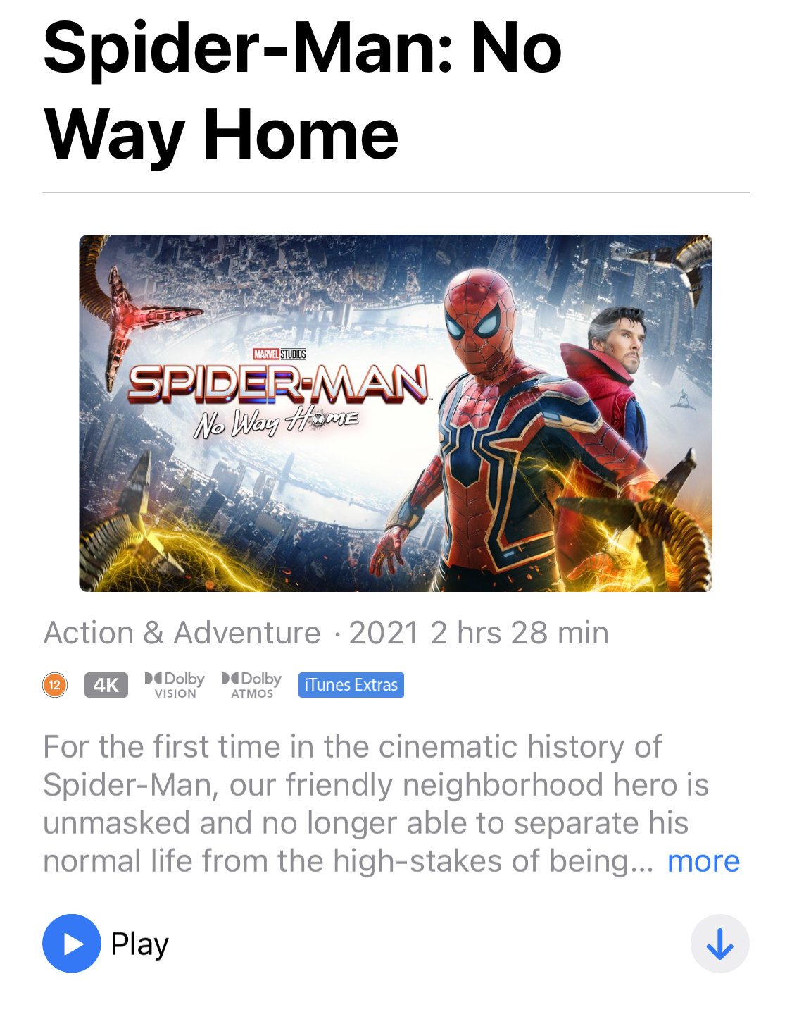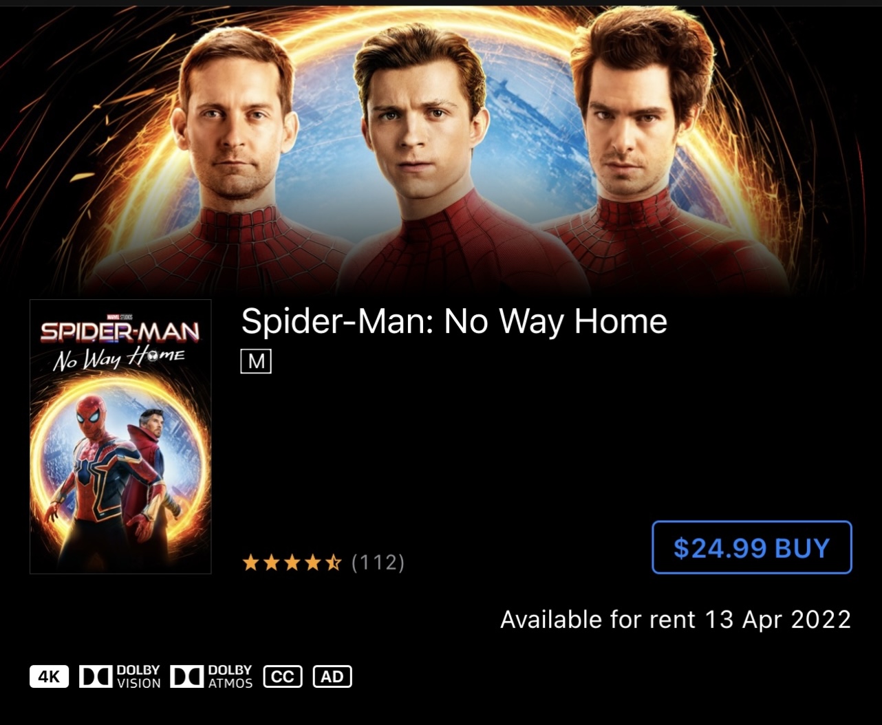 Agree he plays the character very well, see how I go, if I get impatience, I’ll end up renting it.I saw the commercial last night and pre-ordered it so it would be available today. I love Spider-Man and the Tom Holland ones are awesome. I like to have them to watch as a back-up on my iPad while traveling.