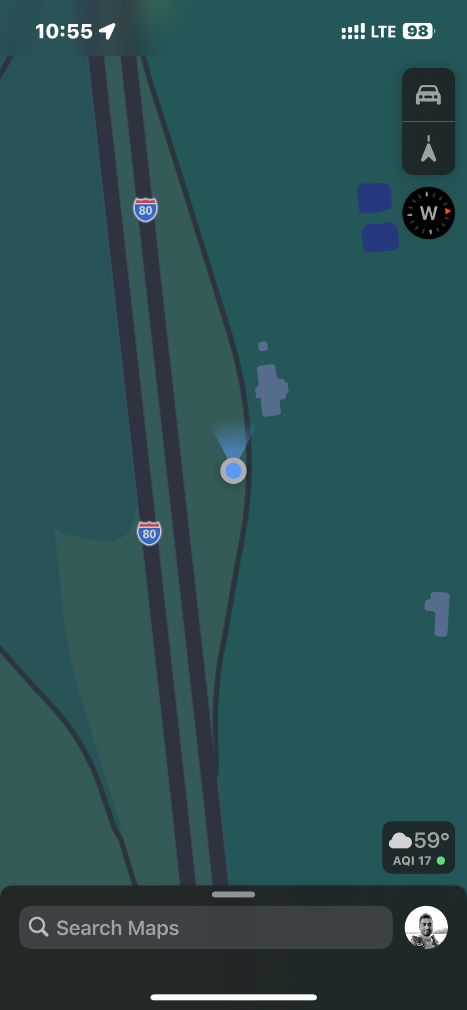 I’m aiming my 13P straight at I-80 and it shows me as pointing parallel.
