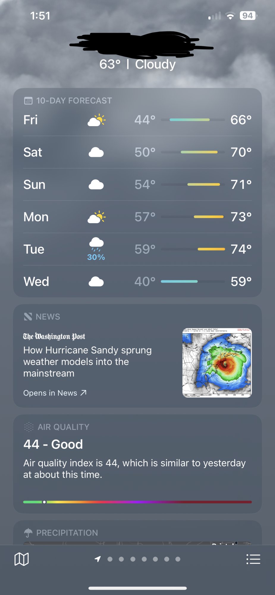 iPad 16.2 beta - Weather - Current 68F - 53Low 69Hi