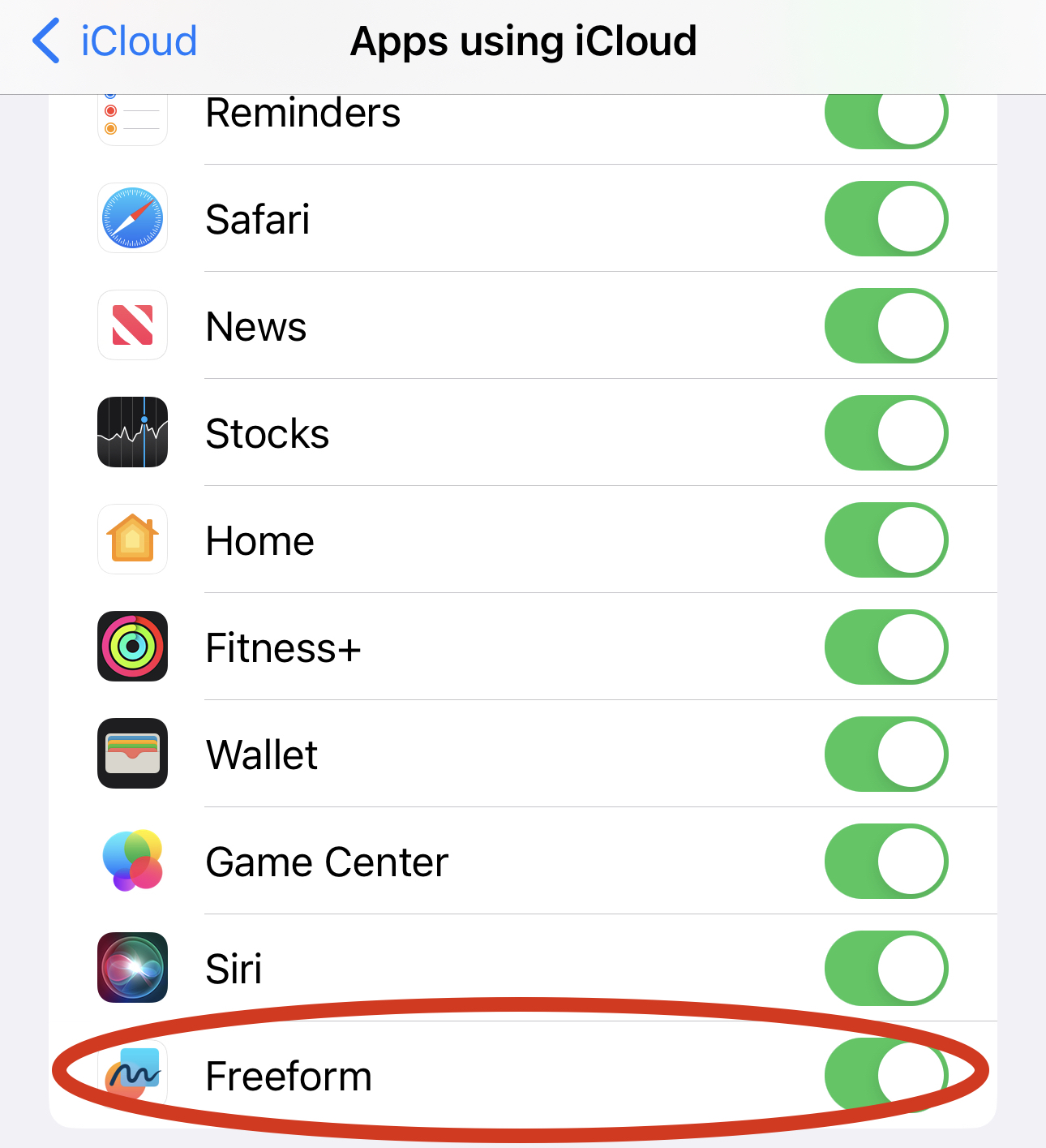 Awesome, thanks.In Settings, under "Apps using iCloud", toggle on Freeform.