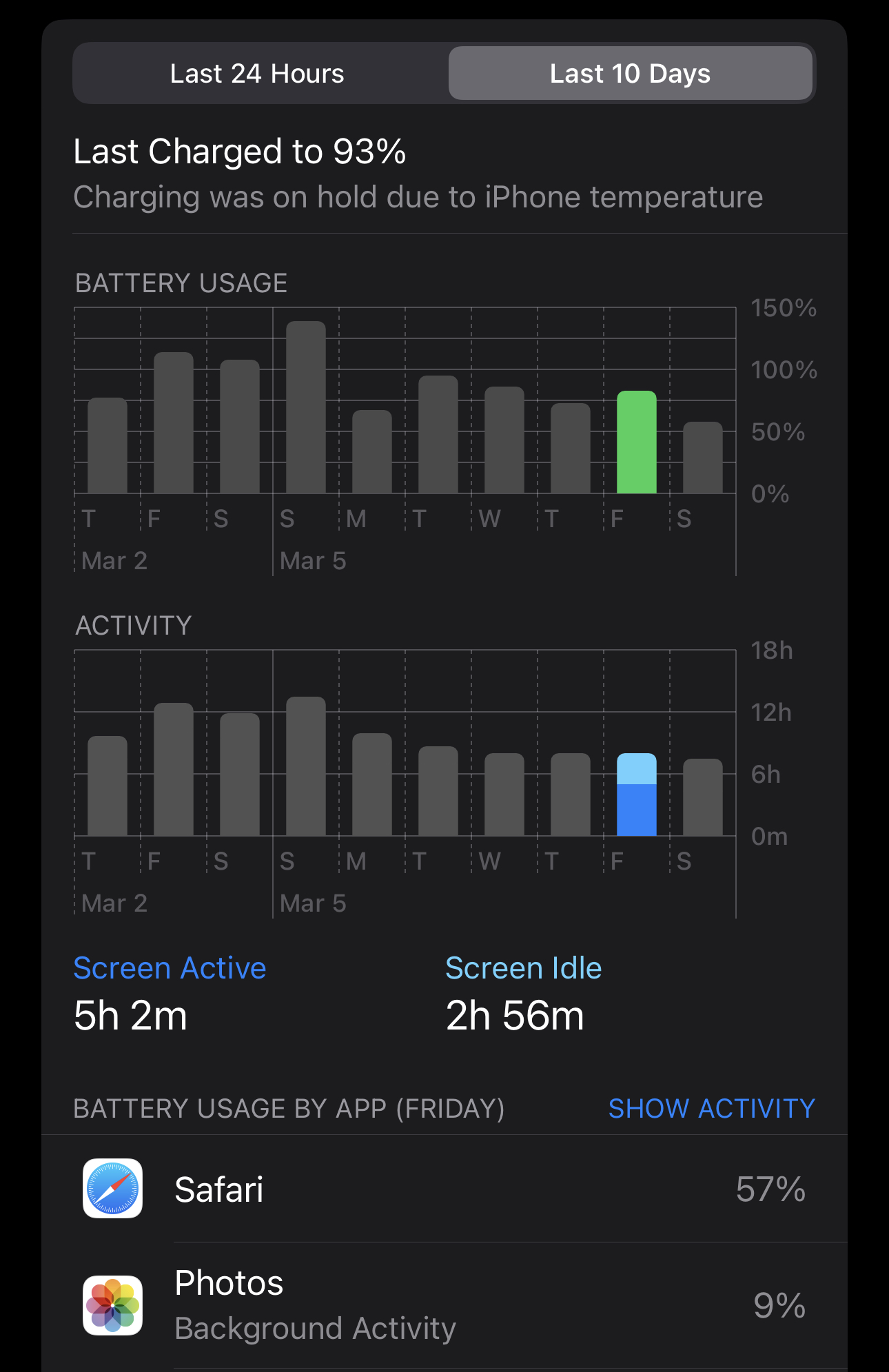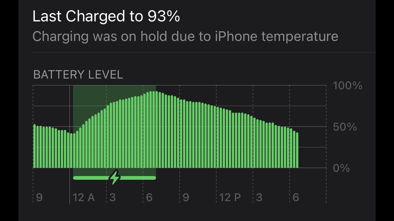 ⚠️ Well this is something new. Not sure what caused the iPhone to be running hot last night. Plugged into 5W Apple charging adapter.