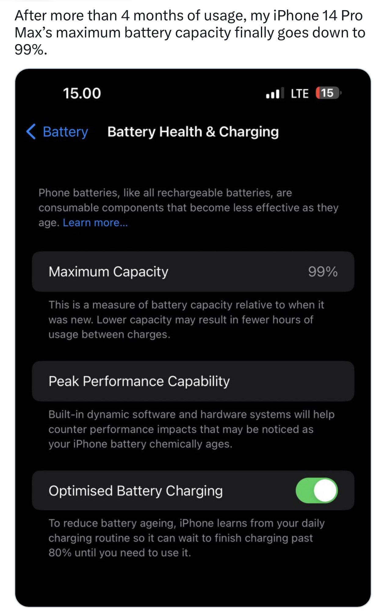 Thanks for the input. I have turned off AOD as well. To my eyes, even doing light tasks on the phone sips more juice than before on the 14’s for some reason. Yet the A16 processor is supposed to be more power efficient. I gathered some patience thinking with iOS 16 being a mess in the start that maybe just some optimizations needed to be made. It’s not horrible battery life, I’m getting 7-8 hours Screen on time. I guess I just got cozy with 10-12 hours on the 13 pro max and didn’t expect the next gen phones to take a step backwards in battery life.