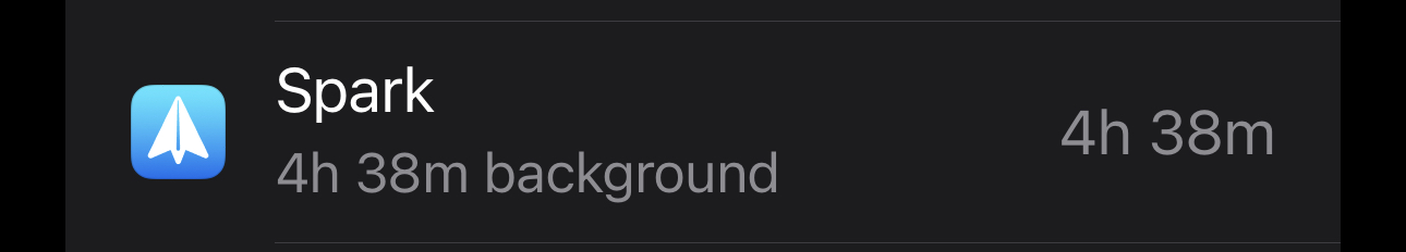 I would recommend giving it a hard restart that seems to iron out weird background activity for Mail based applications every once in a while.I'm observing a huge background usage by the Spark mail app since updating to 16.4 RC (and then 16.4 final). I've sent the logs to their support and they're looking into it, but I looked at the logs myself and there's no activity registered during that time. I don't have any other apps doing that.
