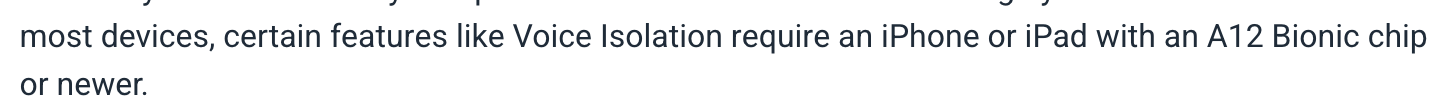 Hey no problem! Hope you get to try those audio filters soon; voice isolation works wonders.Yeah, I just went to check wether the FaceTime voice isolation had any hardware requirement, and it was available only for A12 devices or newer. So yeah, this feature is probably just for A12 and newer devices as well.