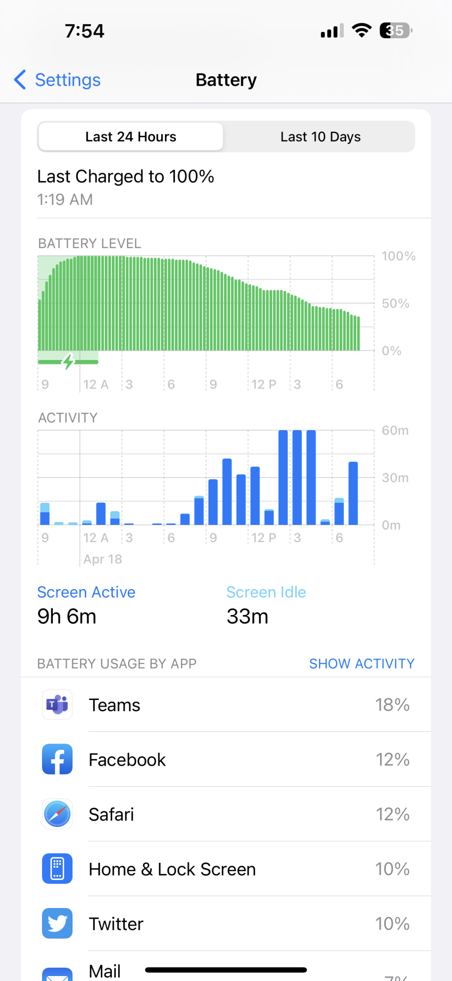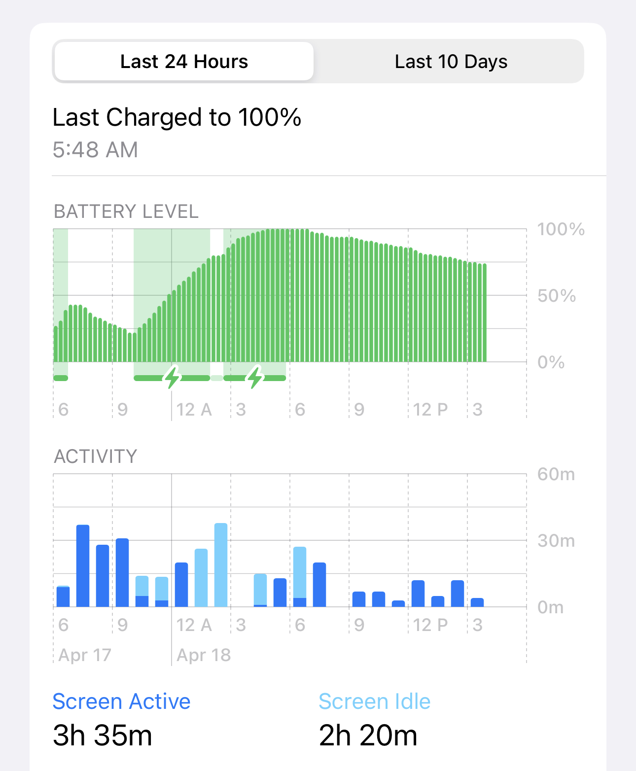Update on the battery life today. Today is a new day and I’m shocked and surprised by the amazing battery life. It’s 3:54 PM… still have 74% left with 3+ hours of on-screen time. The only difference is I didn’t use my iPhone as much as I did yesterday.