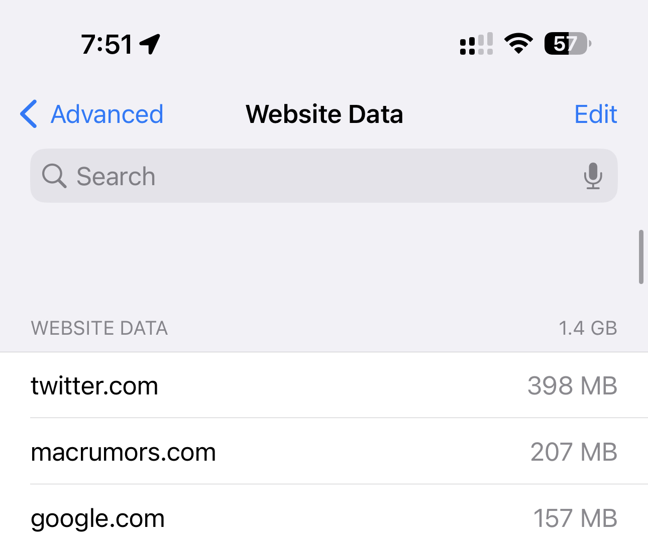 Is Safari App acting up for anyone? What does your Safari Website Data look like?