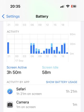 Can you share the battery graph? I have seen others report battery usage out of the ordinary on both the camera app as well as the find my app. Some 3rd party apps like Facebook are also known to wreck havok right now.Wow, iOS 16 is buggy. Completely wrecked my battery life on my 13 Pro. Now I have a 14 Pro and all seemed well, was getting great battery life, and now have had horrible battery life today. Like estimated 4.5-5 hours of SOT. And now, out of nowhere, my phone started getting really hot. What is going on??? Apple please fix this mess.