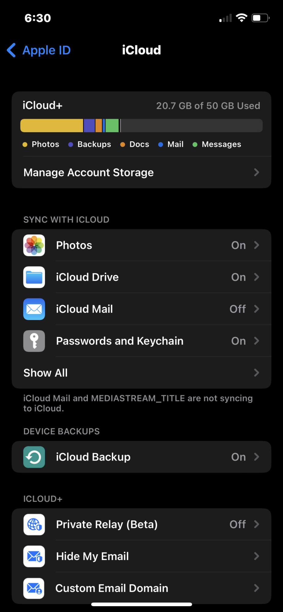 I’m trying to see if a complete erase will fix it. Glad it’s on my secondary iPhone 😂.Your iCloud+ bottom section is totally absent on my iPad Pro. Yes I have +. Same as @VSMacOne post.