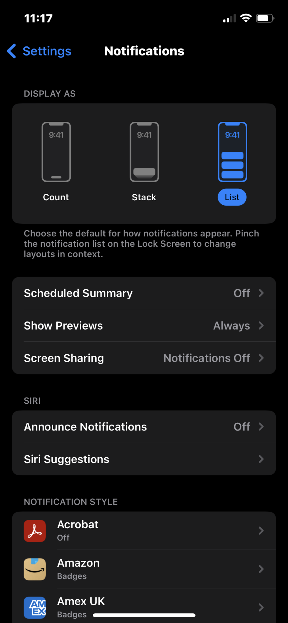 Wish they‘d allow us to pick a default notification layout for every Focus mode. I might want the count layout for my do not disturb Focus, the stack one for my personal one and the full / classic list for my Work focus (so I get to glance at every incoming work mail and chat message).