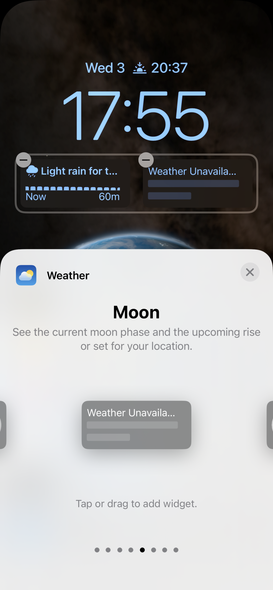 That’s cos the moon was destroyed….Weather Widget - Moon Phases hasn't been available all day. I'm wondering if they're updating it since I reported it last week.