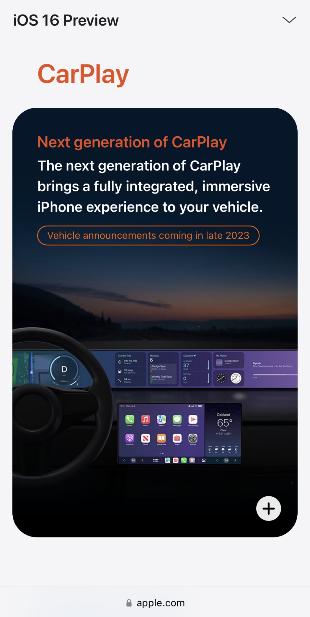 Won't hold your breath. I think we won't see this anytime soon since car manufacturers have to implement this.I know it was a “Sneak Peak” but it was very surprising for Apple to announce something that is probably 18 months away. Do we think this will be in new cars only? I’m looking at getting a Mercedes EQB and this multi-display CarPlay would work perfectly on the double screen but surely it could be implemented with an over the air update rather than requiring completely new hardware?