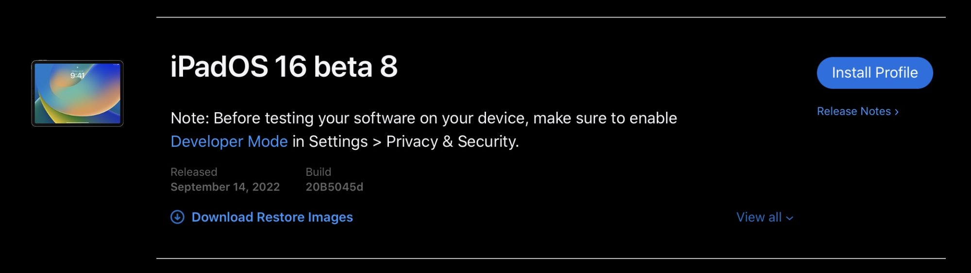 iPad iOS 16 beta 8 build 20B5045d