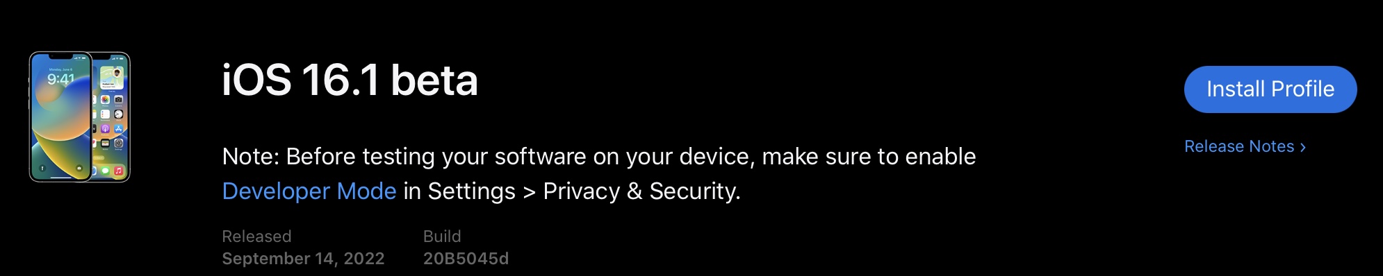iPhone iOS 16.1 beta 1 build 20B5045d