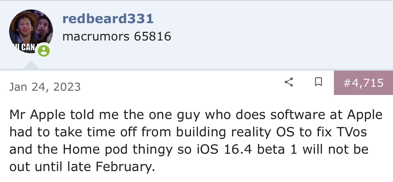 Whoever gets an iOS 16.4 Beta 1 release date correct for next week deserves a big shout-out!!! Because none of us got it right for the last 2-3 weeks.