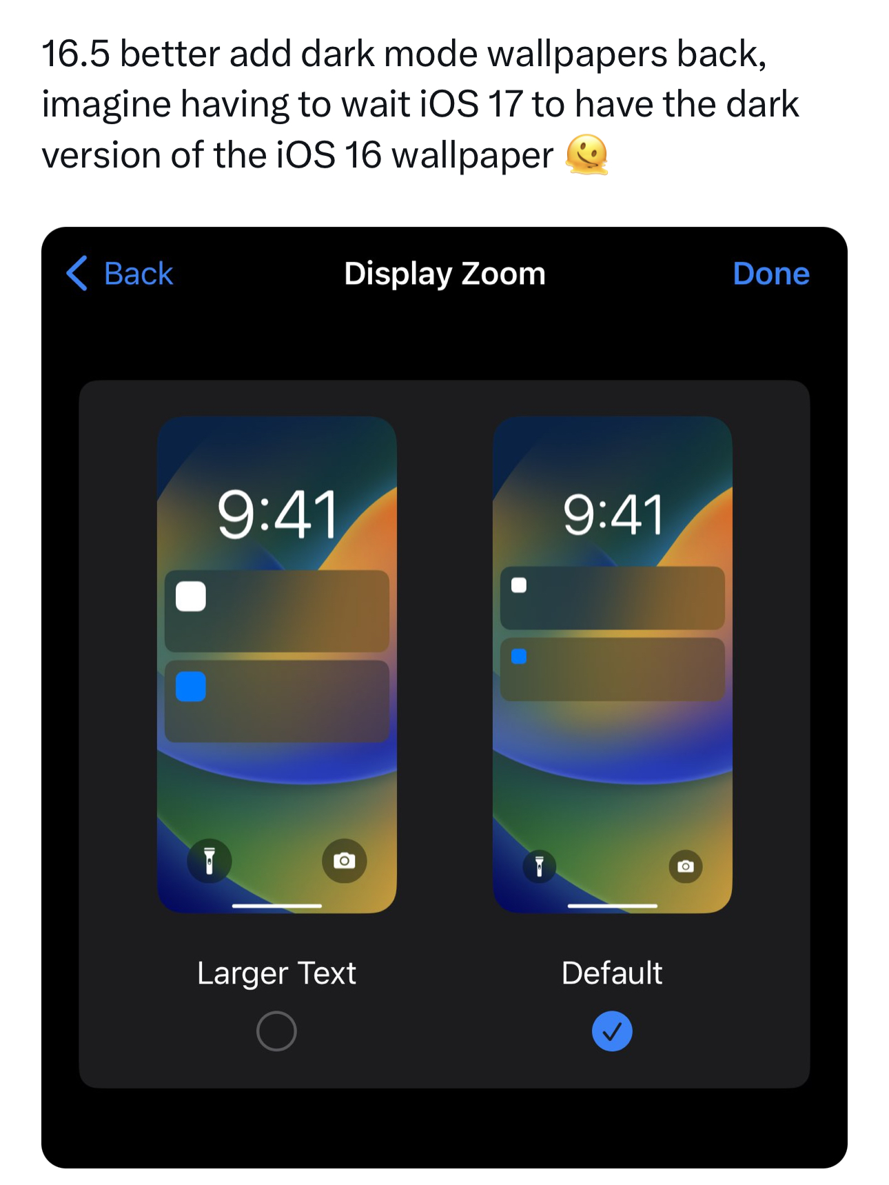 In addition, I can hardly understand the reason of removing old stills from iOS 15 and keeping those buggy dynamic wallpapers.I am pretty sure, we won’t get it in either iOS 16.6 or 17. This was from the beginning weird decision to introduce only light version of the wallpaper.