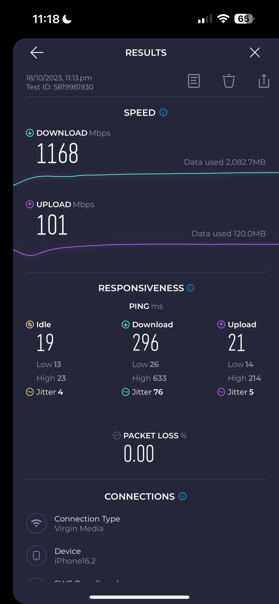 Looking at link speed between the 15 PM and my router its connecting at 2.4Gbps, so plenty of extra speed I could squeeze out of this if my internet was even quicker.
