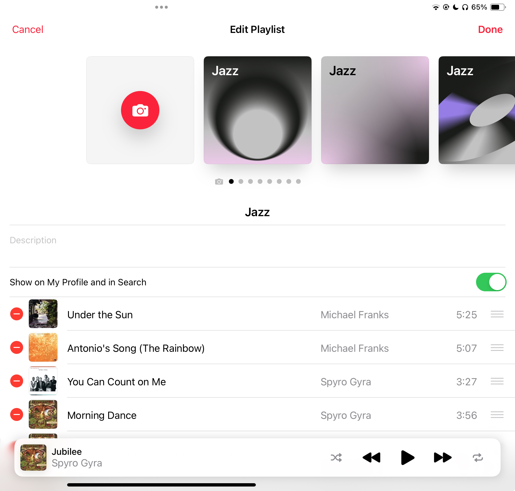 I changed the album cover for a playlist to check out the new feature related to colors and the cover for the playlist, but now I can’t see a way to go back to the original (a mix of the actual album covers from the playlist). It is no longer a selection. I only get the new colors/covers or choose a photo option. What am I missing? Am I stuck with only the new stuff now and can’t go back?Pretty substantive list of improvements for an x.1 update. Maybe one of the biggest ever? Really enjoying the Favorites and Playlists changes in Music.