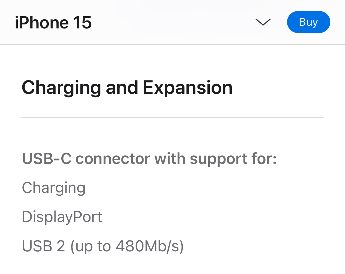 The A14 in the iPad Air supported USB 3 5Gbit/sec. The A16 in the iPhone 15 will also have a USB 3 controller.I may be wrong but the chip being used in the non pro iPhones is last years chip, which does not have a USB controller capable of USB 3 speeds.
