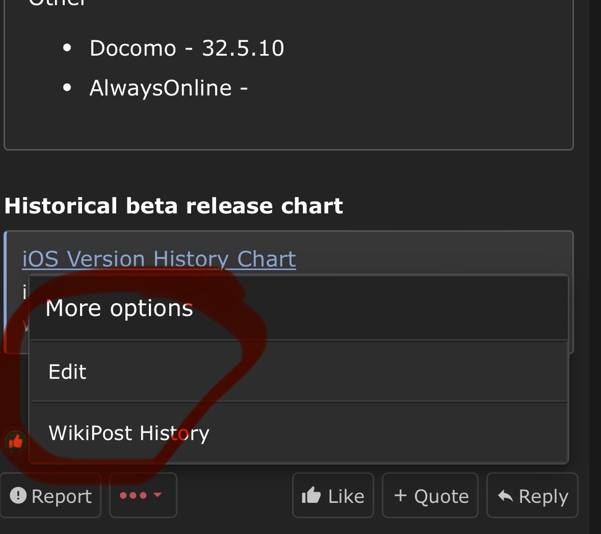 If you want to update it I believe you need 25 posts or more to do so, but you go to the main post of the iOS update, and the little dots at the bottom of said post, you tap it and this opens (see image). Tap edit and the written message will open. Scroll to the carrier you wish to update.