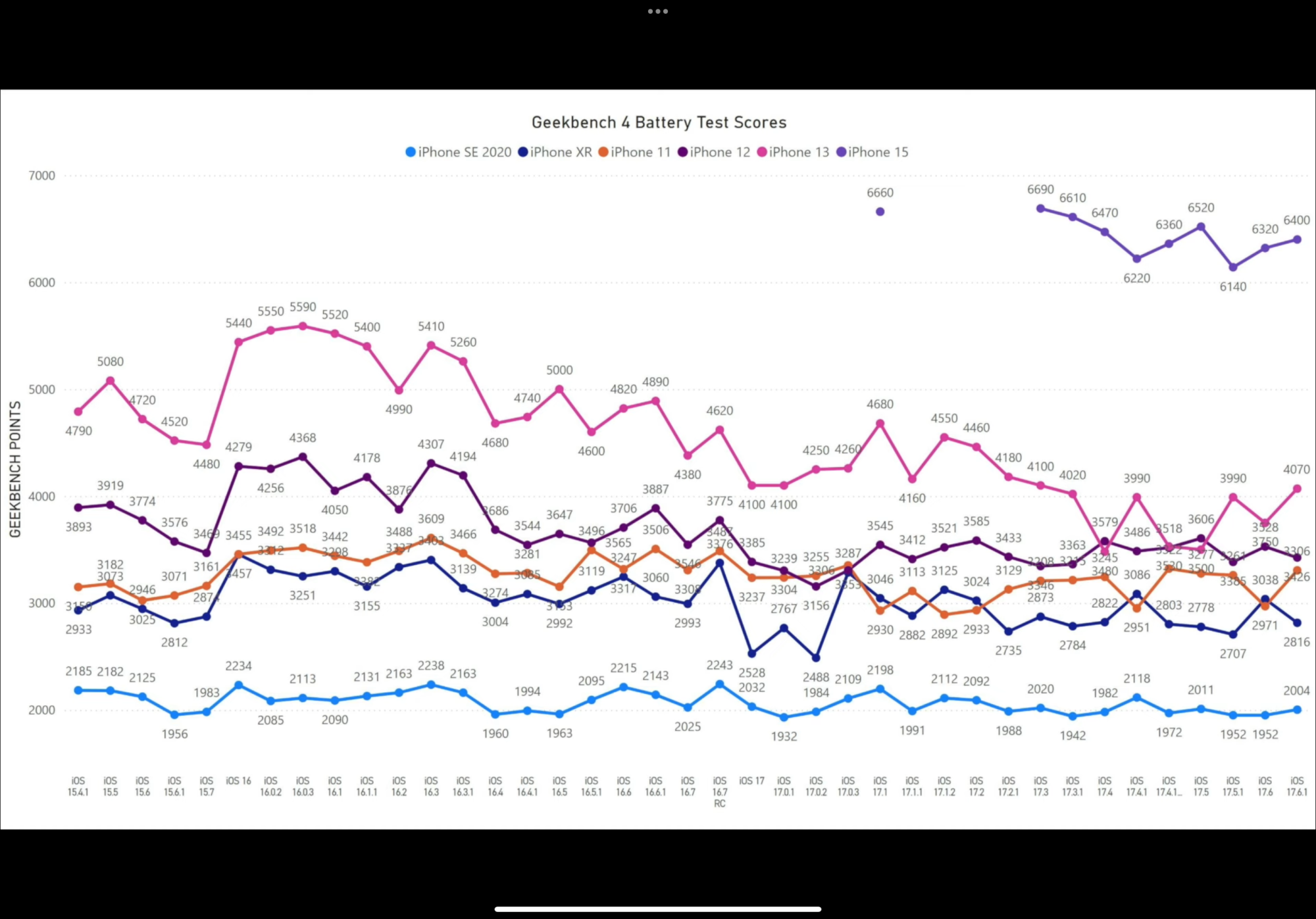 @Reverend Benny said, such tests don’t reflect other variables such as the cellular signal or WiFi/Bluetooth reception, which play a significant role in the battery life, and if I recall correctly, iOS 17.6 introduced a modem update for some models. But that doesn’t have to be a bad thing