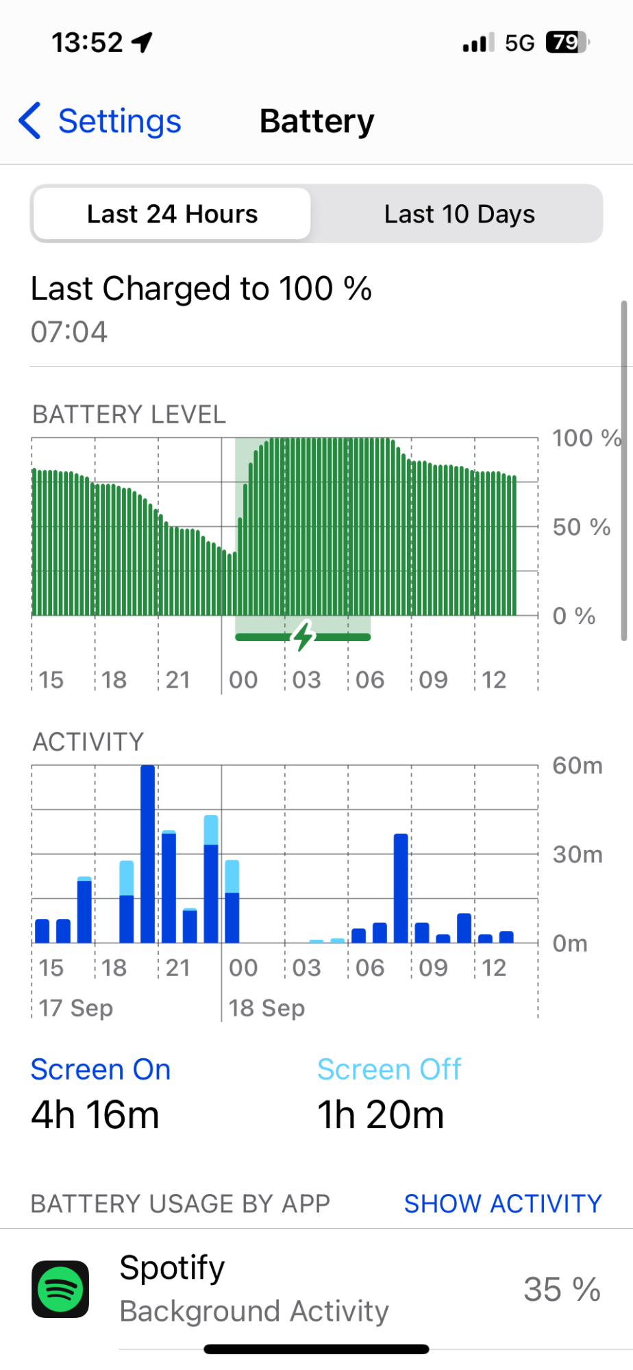 Haven't done a regular day with 17.7 yet so can't tell exactly. But considering I was using it as a hotspot this morning for an hour while listening to music with airpods on 5G and just some random checks and musiclistening at work its shows pretty good numbers.How is battery on 17.7 RC/final compared to 17.6.1?