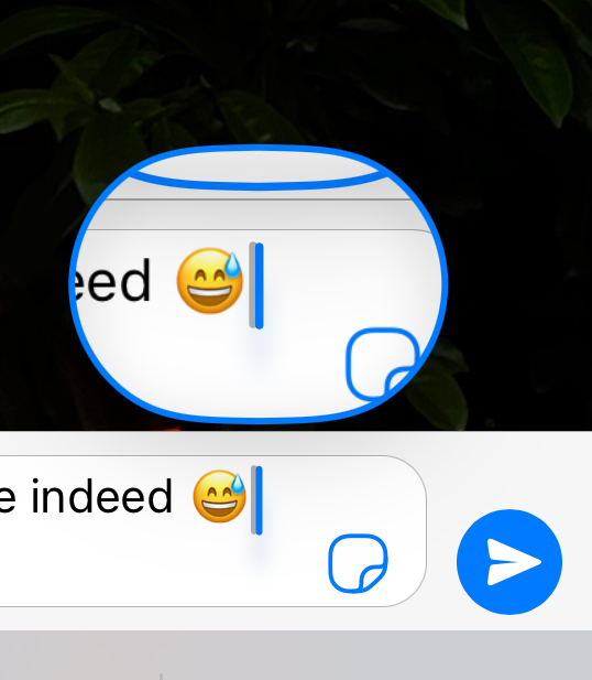 That's a weird kind of oval shape, looks uneven.Text Magnification is back when selecting text. Or is this something I’ve just not noticed
