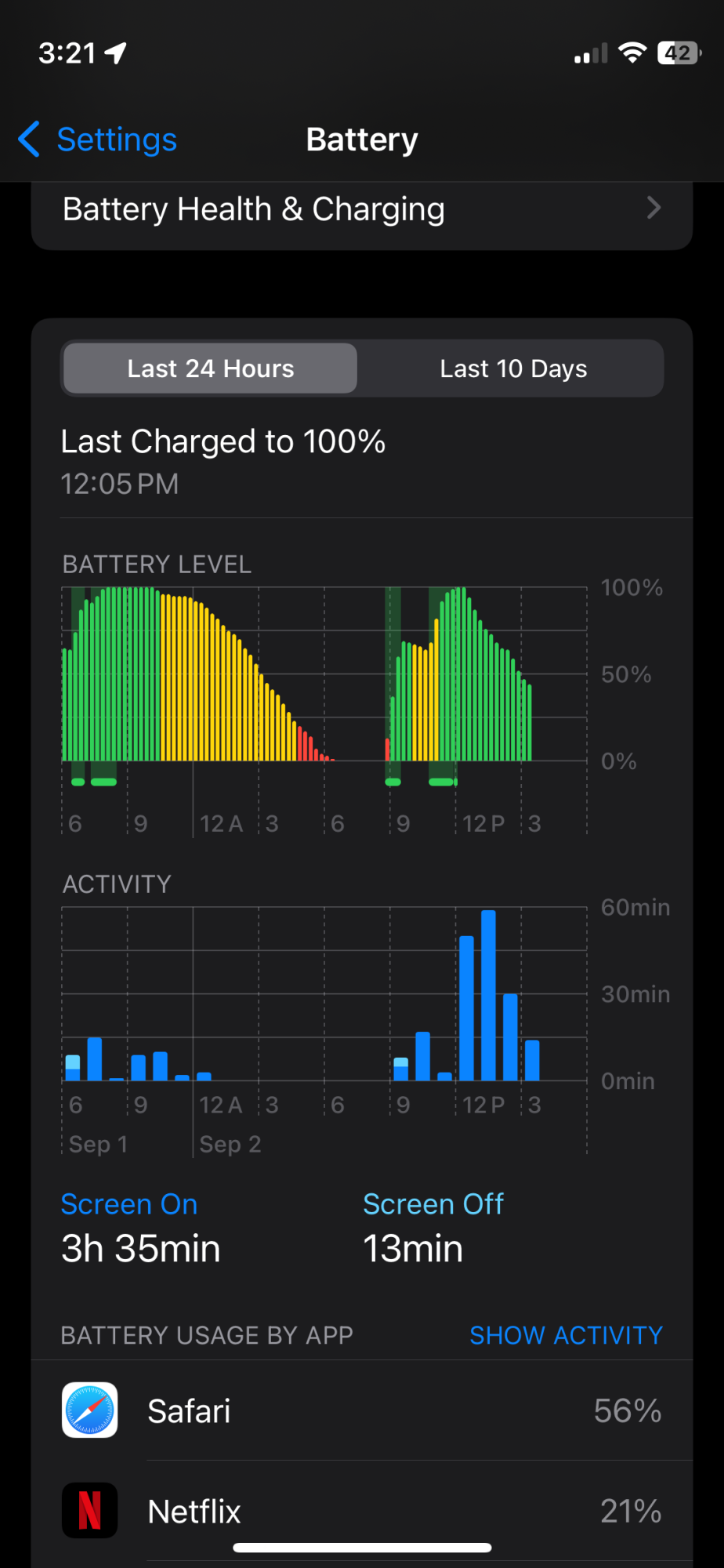 To be honest, you probably won’t notice much difference in how long the battery’s last you in a day until you hit around the 85% mark. That’s when I was charging twice a day on my 12, so I decide to get a new bat then.