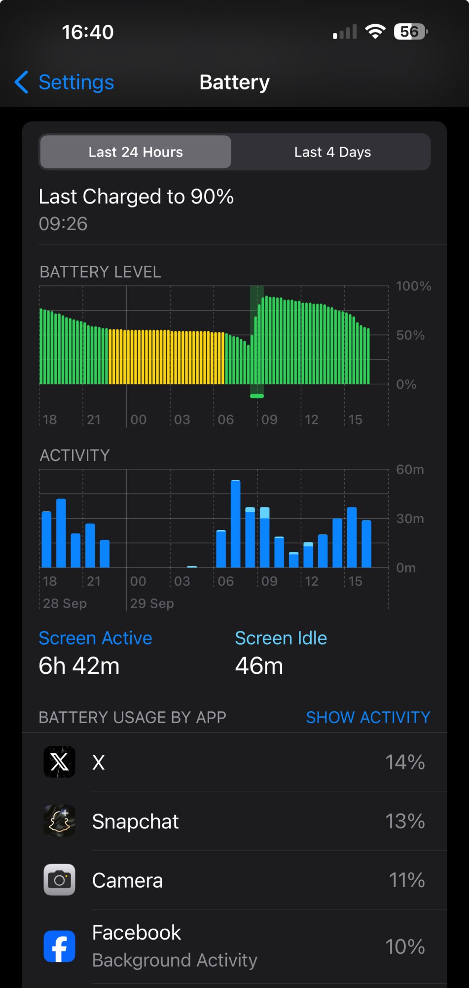 I also for some reason didn’t mention that in my reply to him, but it’s a little more than one hour. If performance were equal and iOS 17 only decreased my SOT by one hour on my Xʀ (when compared to iOS 12, obviously), I’d update today. Sadly, it’s far more than that, especially on heavier usage patterns.