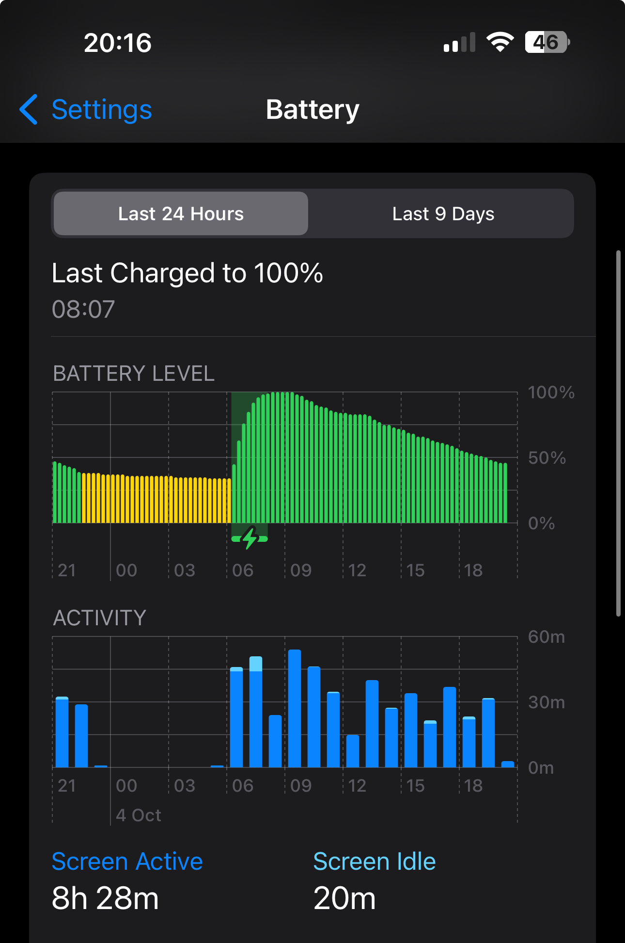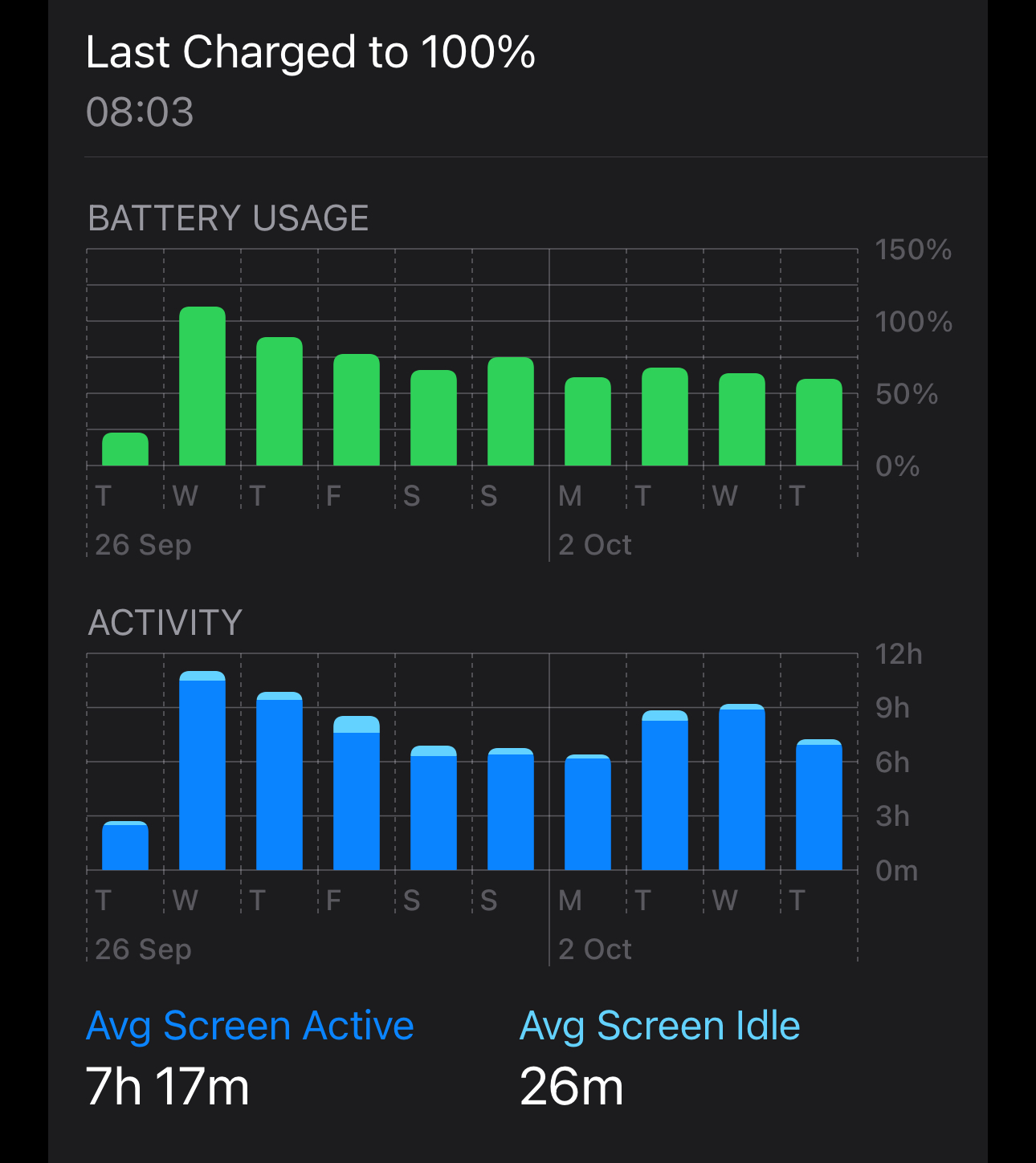Like I’ve always said at these posts: I’m not a heavy user, in terms of settings, usage, AND screen-on time. While I acknowledge that it’s pointless to compare different usage patterns (I have seen that myself, on my devices), it’s difficult to find that number amazing when my 7-year-old iPhone 6s on iOS 10 with light usage can get to about 4 hours on 50%.