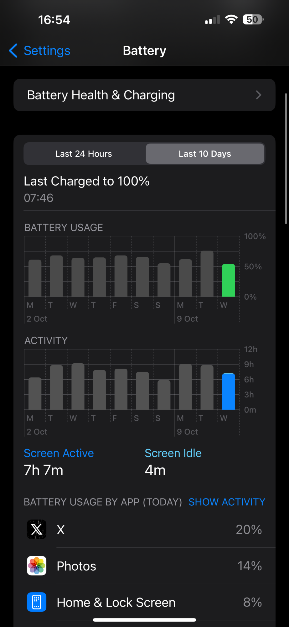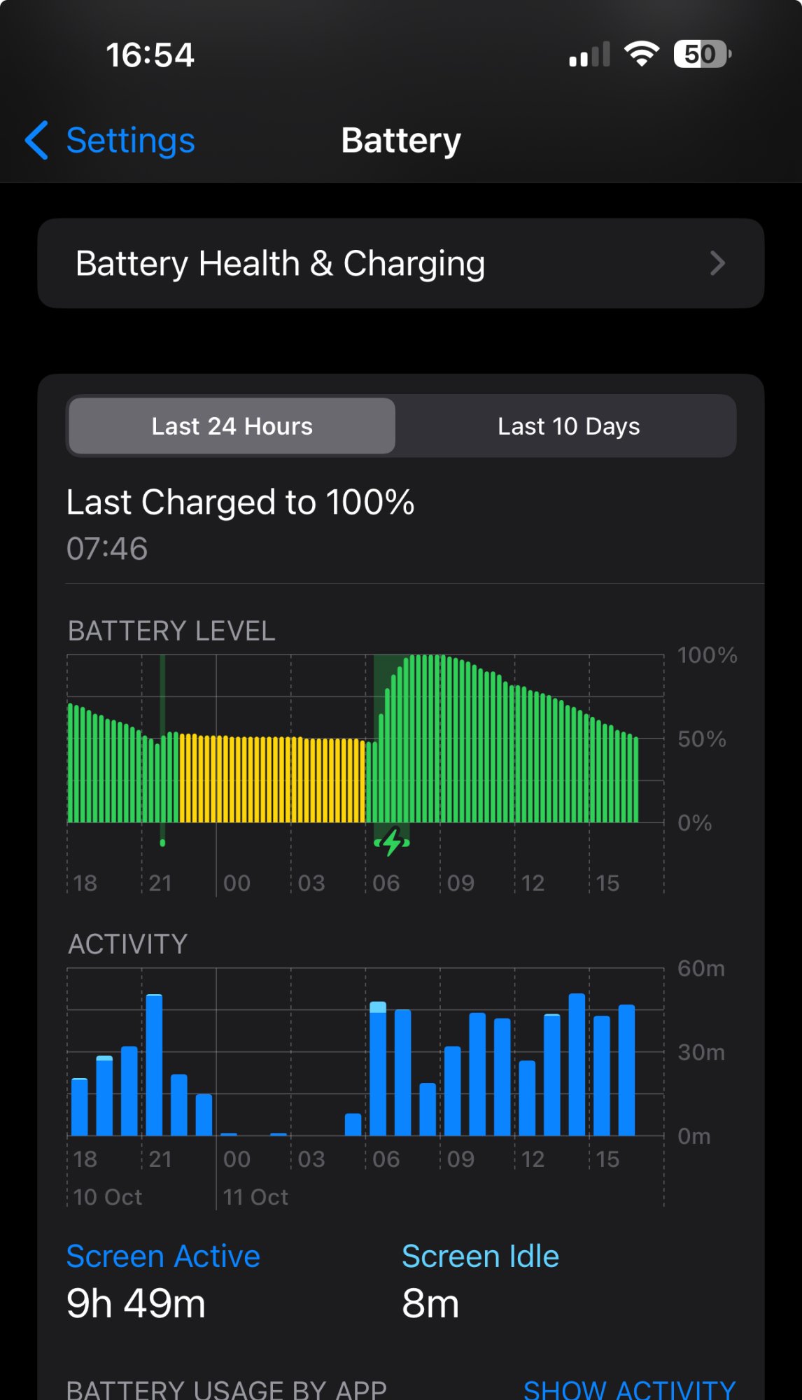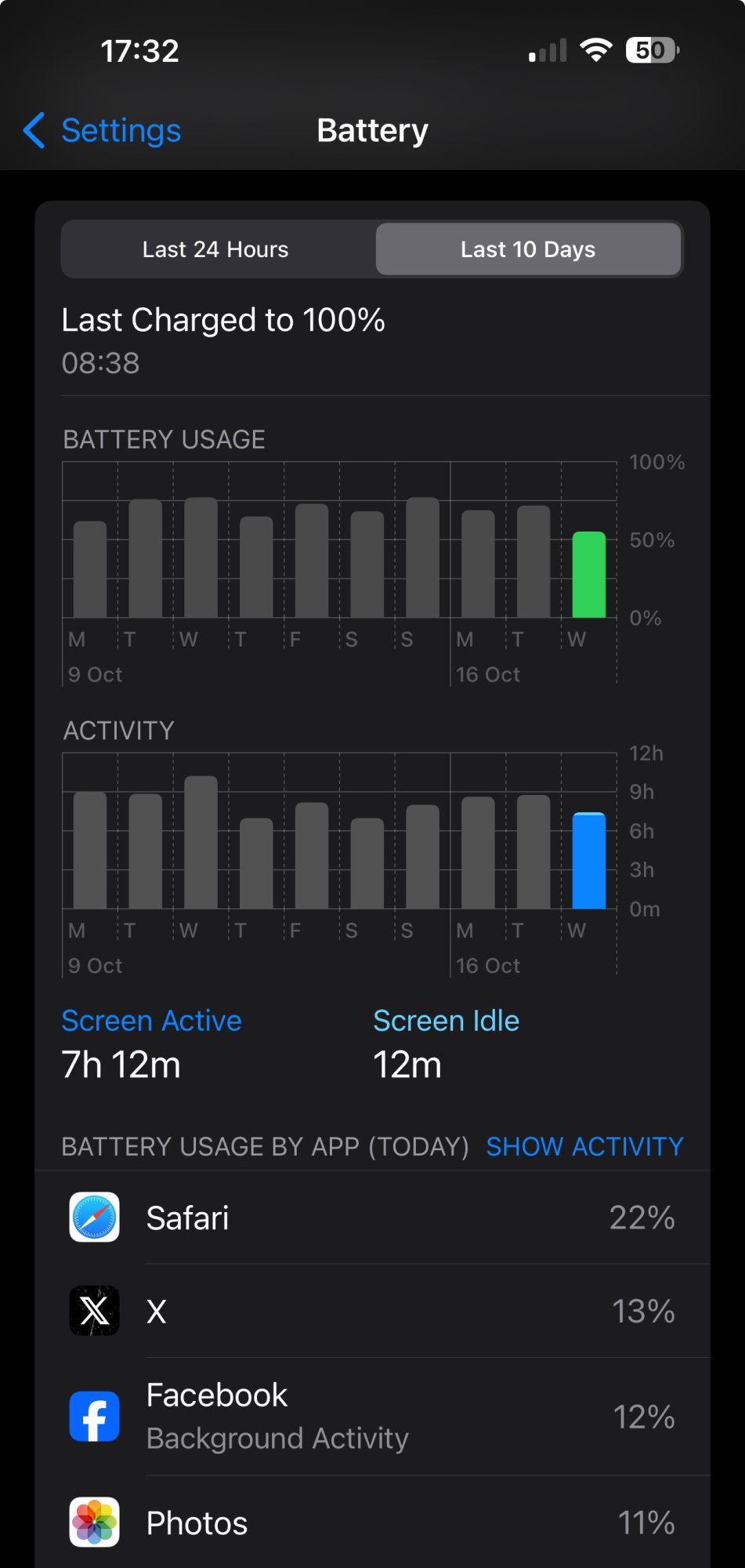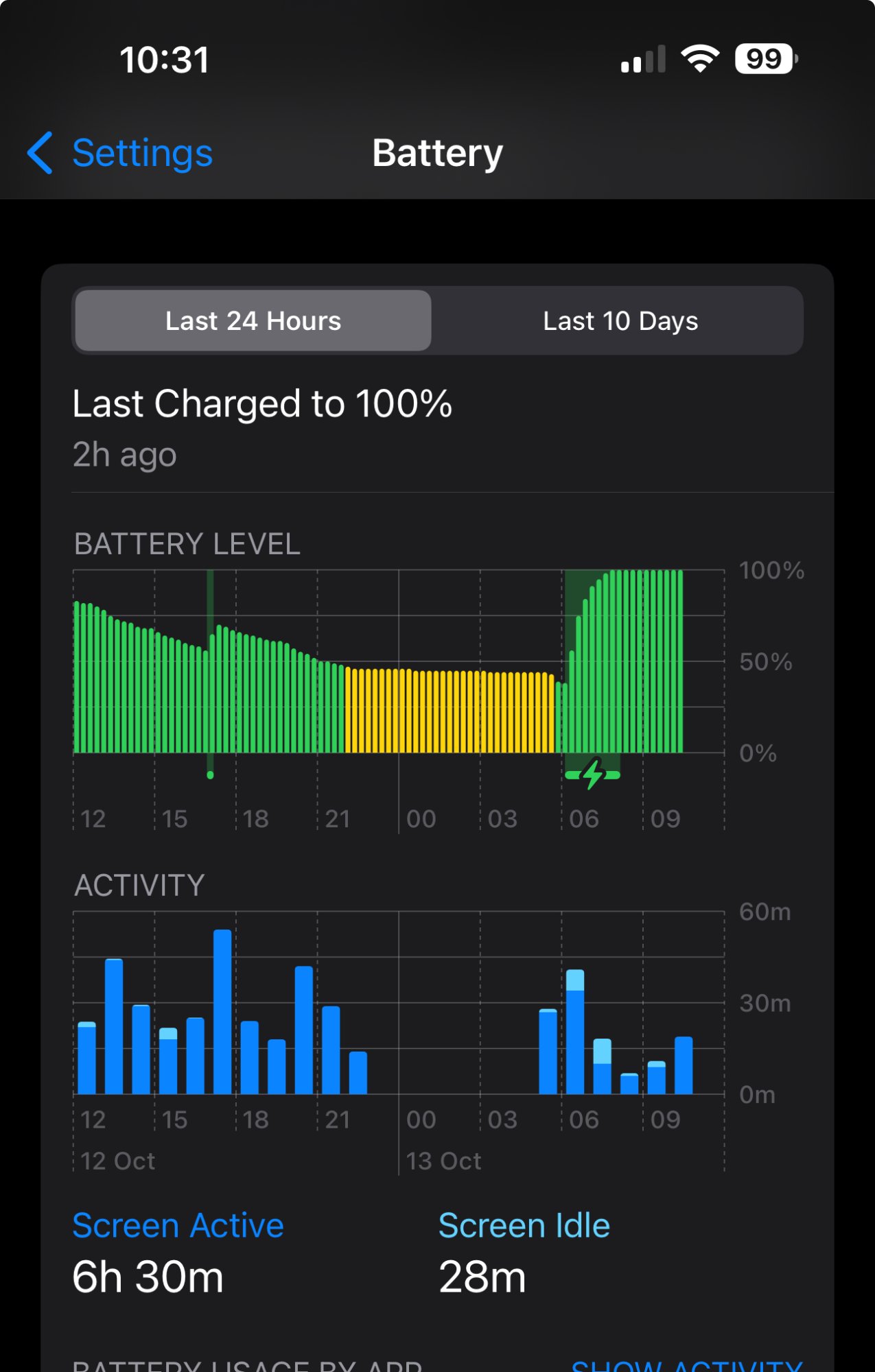 Above: iOS 17 before reset: went down to about 60% in 12 hours (9pm to 9am) of almost no use.