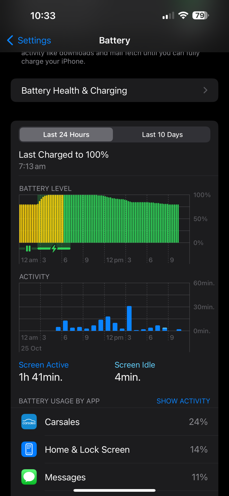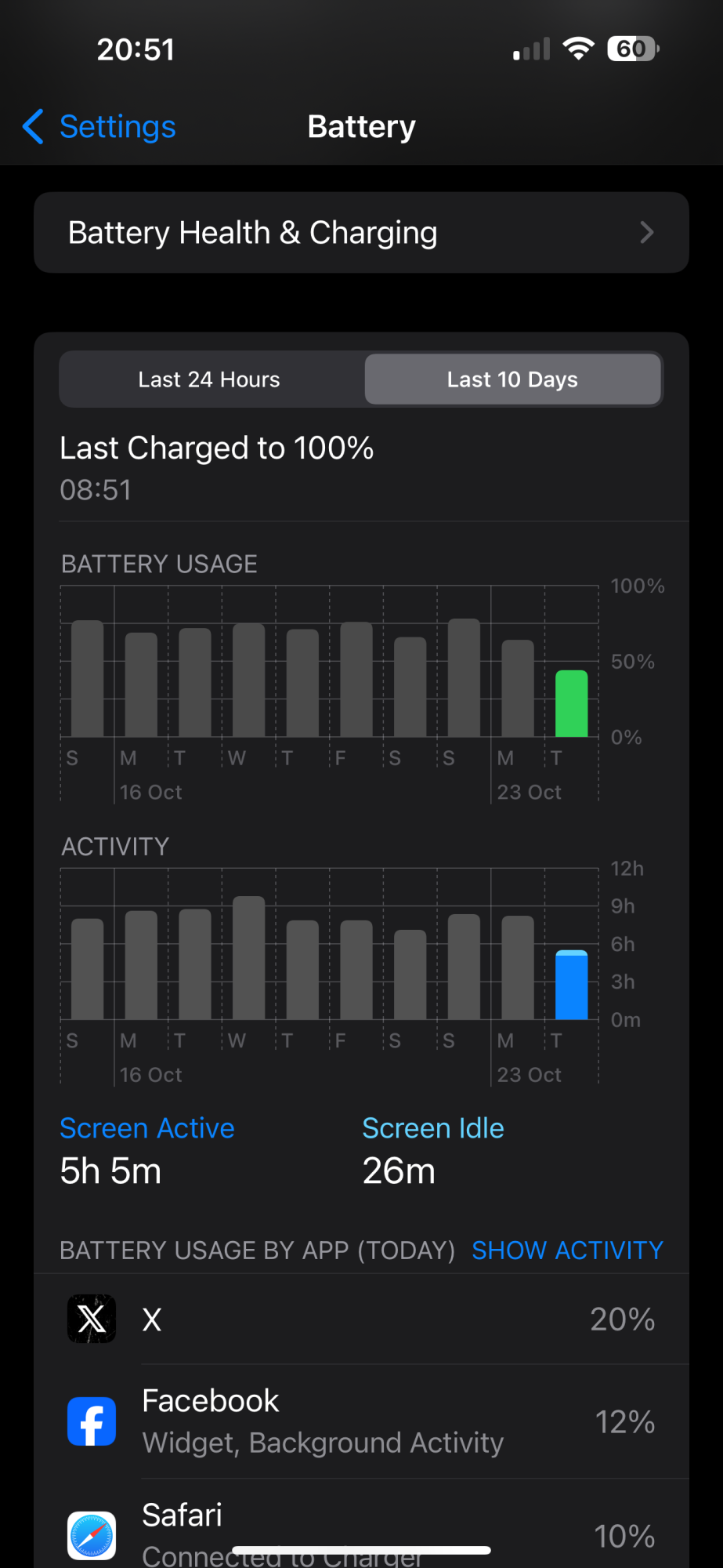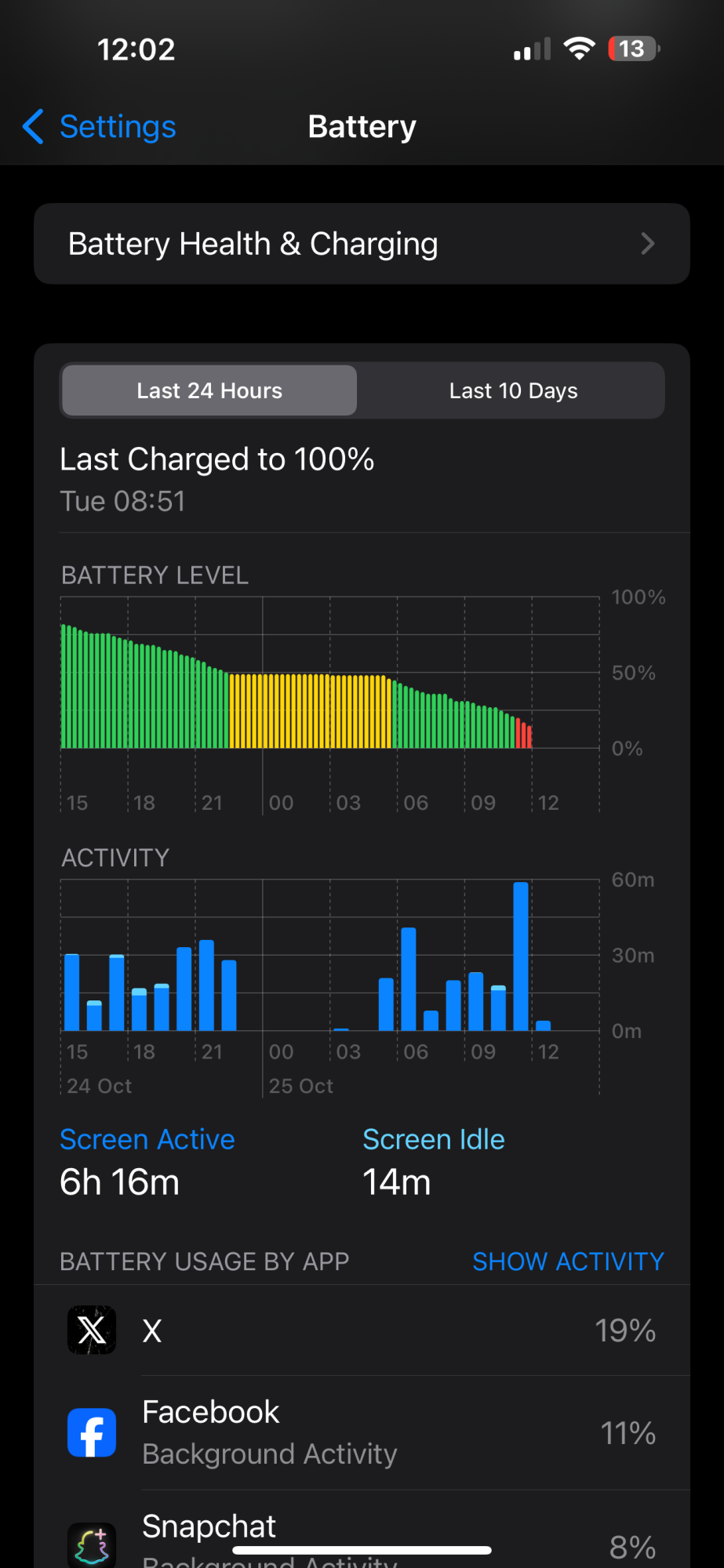 That’s actually quite good battery life for a mobile data. I still used to have better battery life on iOS 16 than you have right now but here’s my on iOS 17Yes that day mostly WiFi.