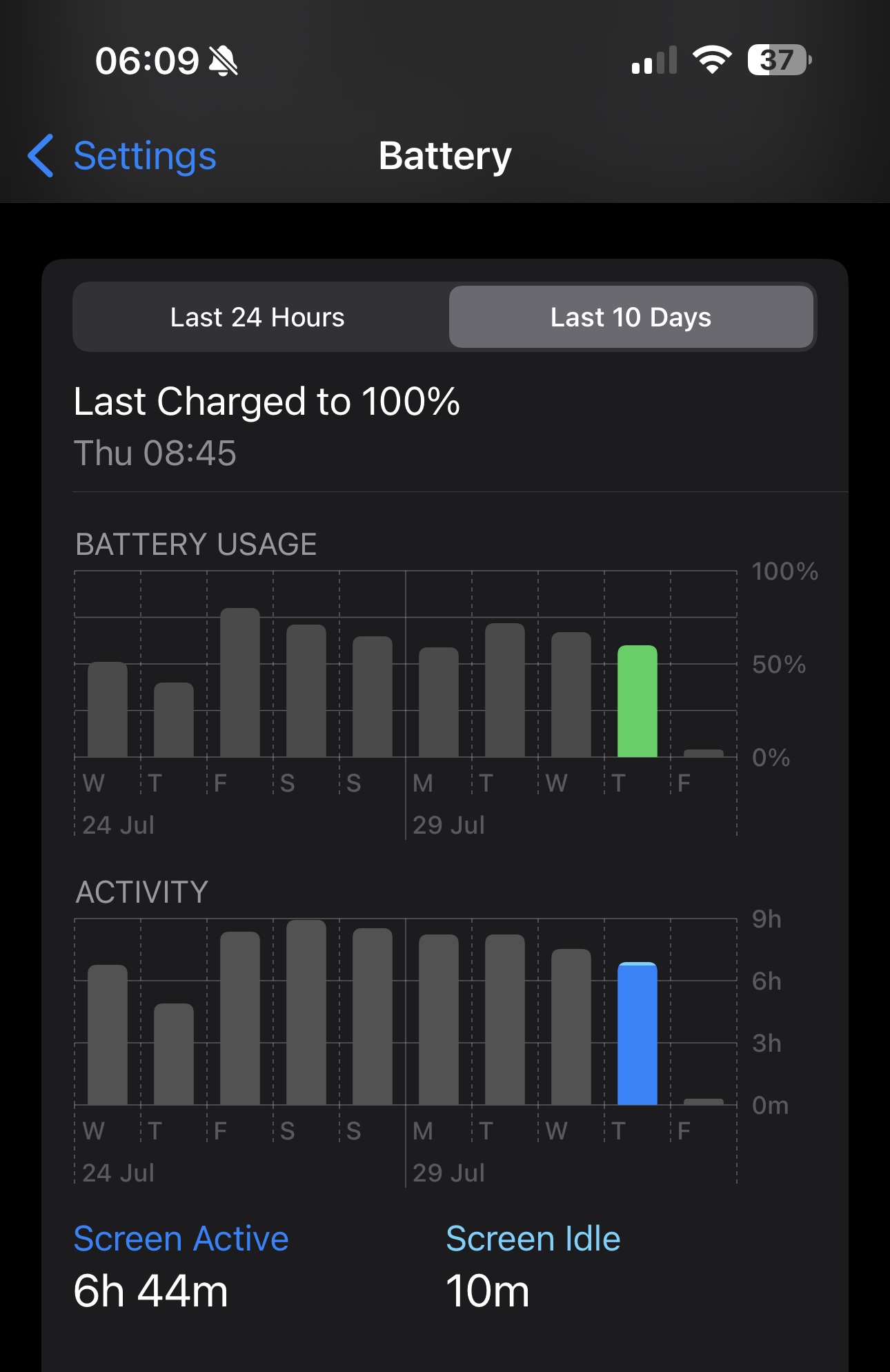 Here's battery life on my 13 Pro Max on 17.6 beta 3. This was the best iOS 17 release in terms of battery life. I was actually for the first time since updating to iOS 17 almost able to hit 8h SOT (I didn't because I went to sleep so I put my phone on a charger). Unfortunately it's still way less than I used to get on iOS 15 and 16.View attachment 2400618